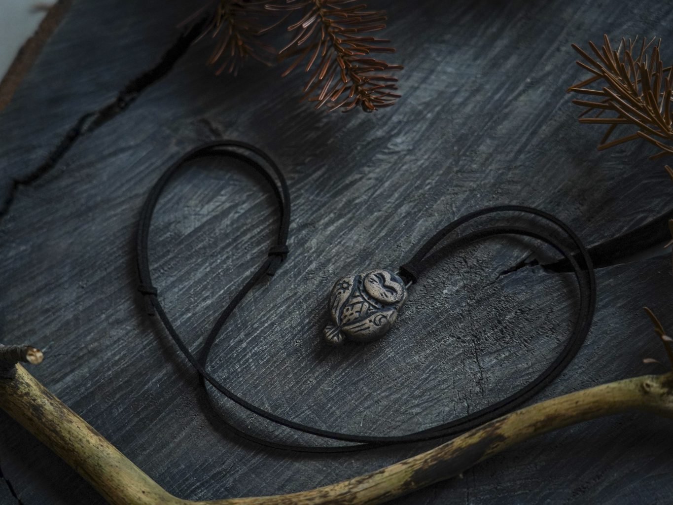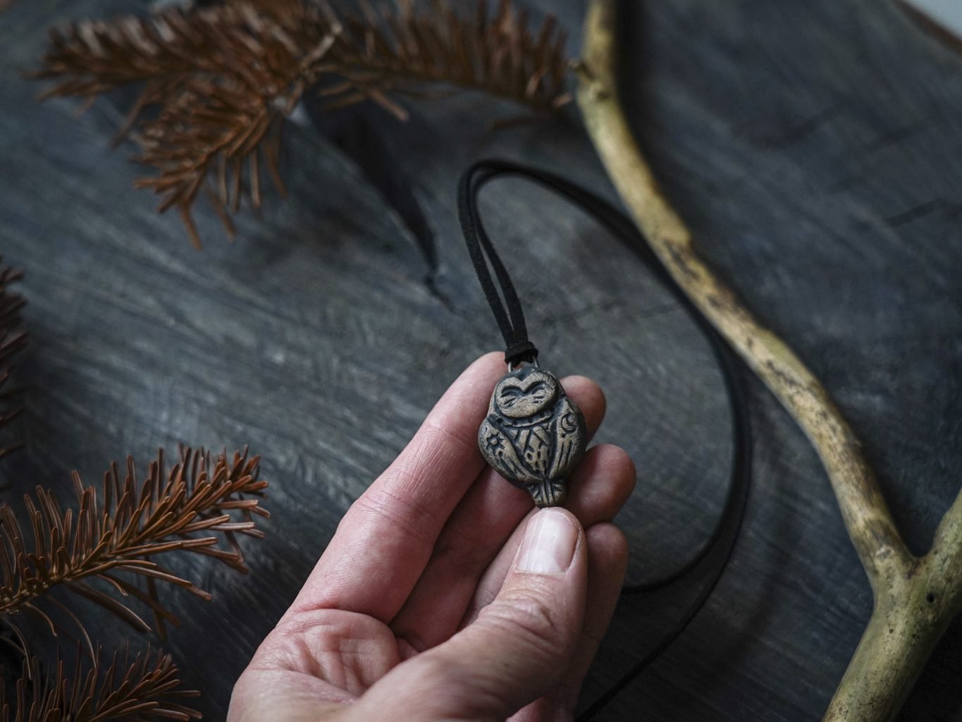 Papuošalai pagaminti iš keramikos. Iš geltono molio nulipdytos formos išdegamos 1000 laipsnių temperatūroje, tada tonuojamos rankomis. Metalinė ženkliuko adatėlė pagaminta iš nerūdijančio plieno, kitoje pusėje užspaudžiama tvirta kietos gumos detale.