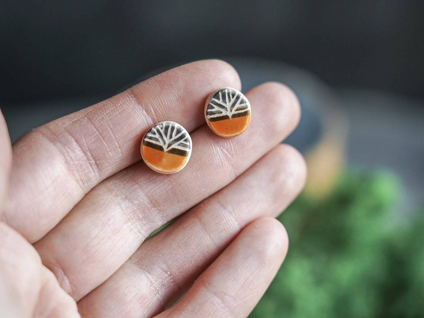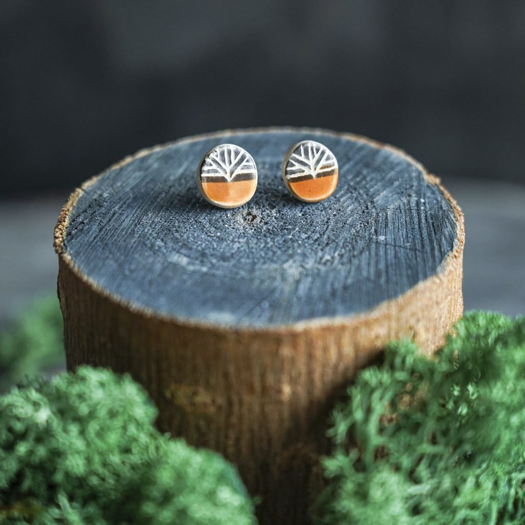 Papuošalai pagaminti iš keramikos. Iš molio nulipdytos formos išdegamos 1000 laipsnių temperatūroje, tada išpaišomos rankomis, padengiamos bespalve glazūra ir išdegamos antrąkart. Auskarų adatėlės pagamintos iš nerūdijančio plieno.