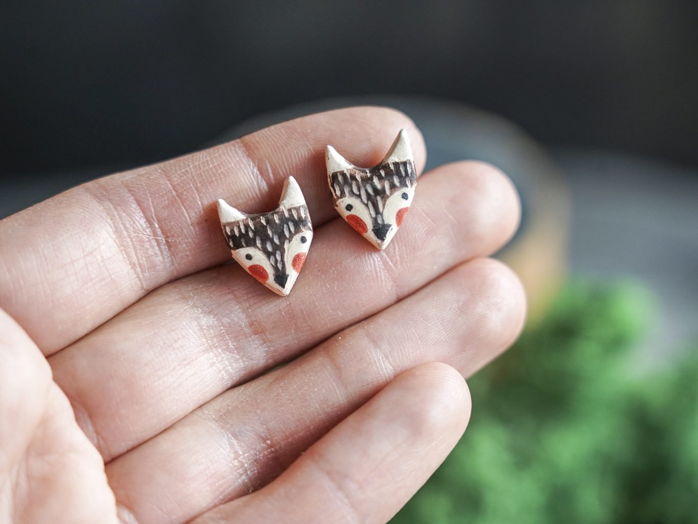 Papuošalai pagaminti iš keramikos. Iš molio nulipdytos formos išdegamos 1000 laipsnių temperatūroje, tada išpaišomos rankomis, padengiamos bespalve glazūra ir išdegamos antrąkart. Auskarų adatėlės pagamintos iš nerūdijančio plieno.