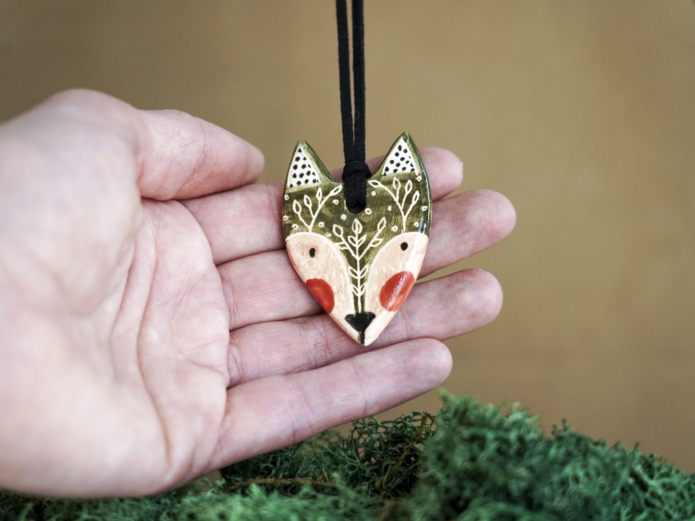 Papuošalai pagaminti iš keramikos. Iš balto molio nulipdytos formos išdegamos 1000 laipsnių temperatūroje, tada išpaišomos rankomis, padengiamos bespalve glazūra ir išdegamos antrąkart.