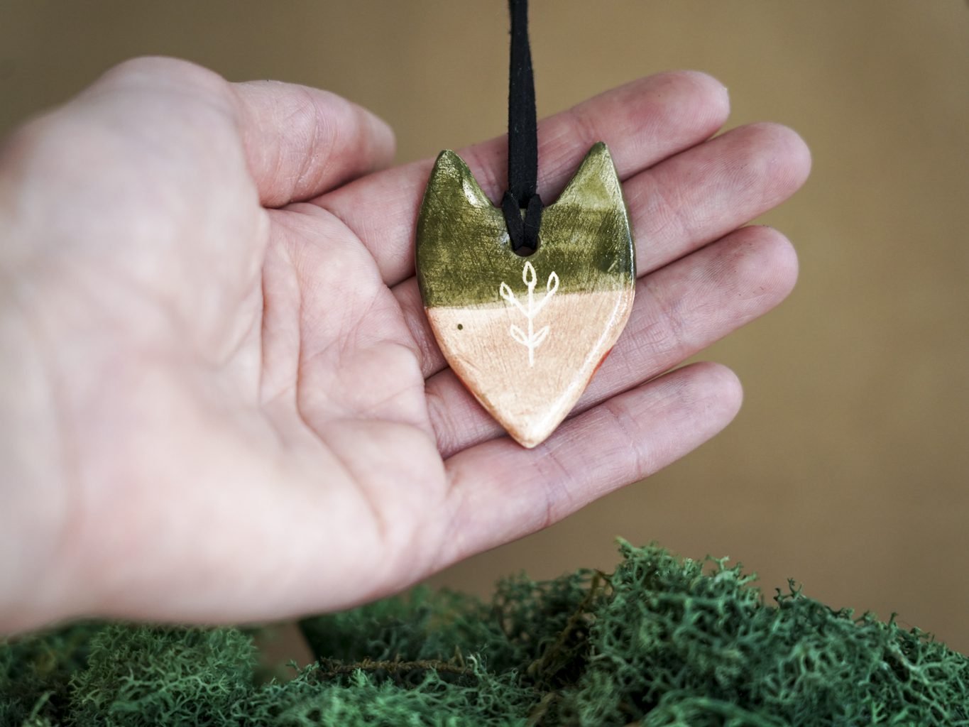 Pakabukas pakabintas ant odinės virvelės