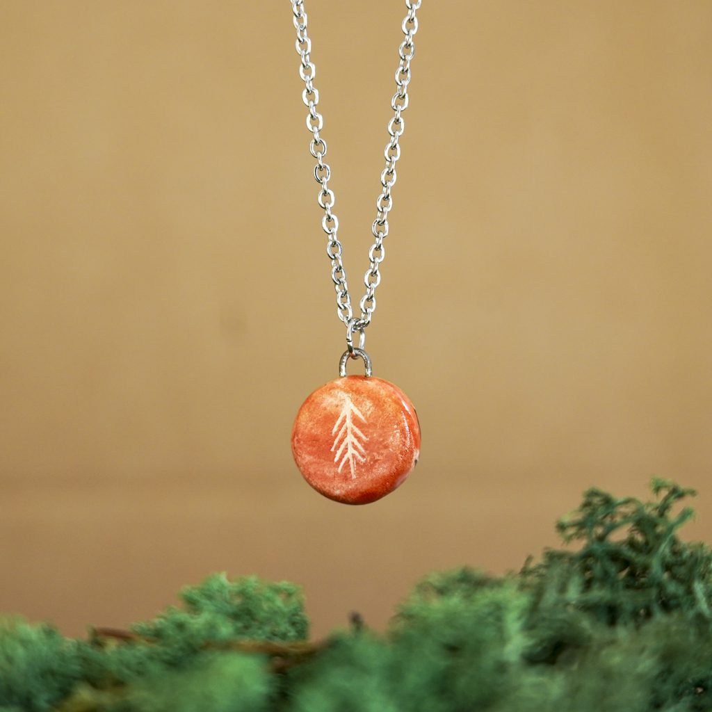Papuošalai pagaminti iš keramikos. Iš balto molio nulipdytos formos išdegamos 1000 laipsnių temperatūroje, tada išpaišomos rankomis, padengiamos bespalve glazūra ir išdegamos antrąkart.