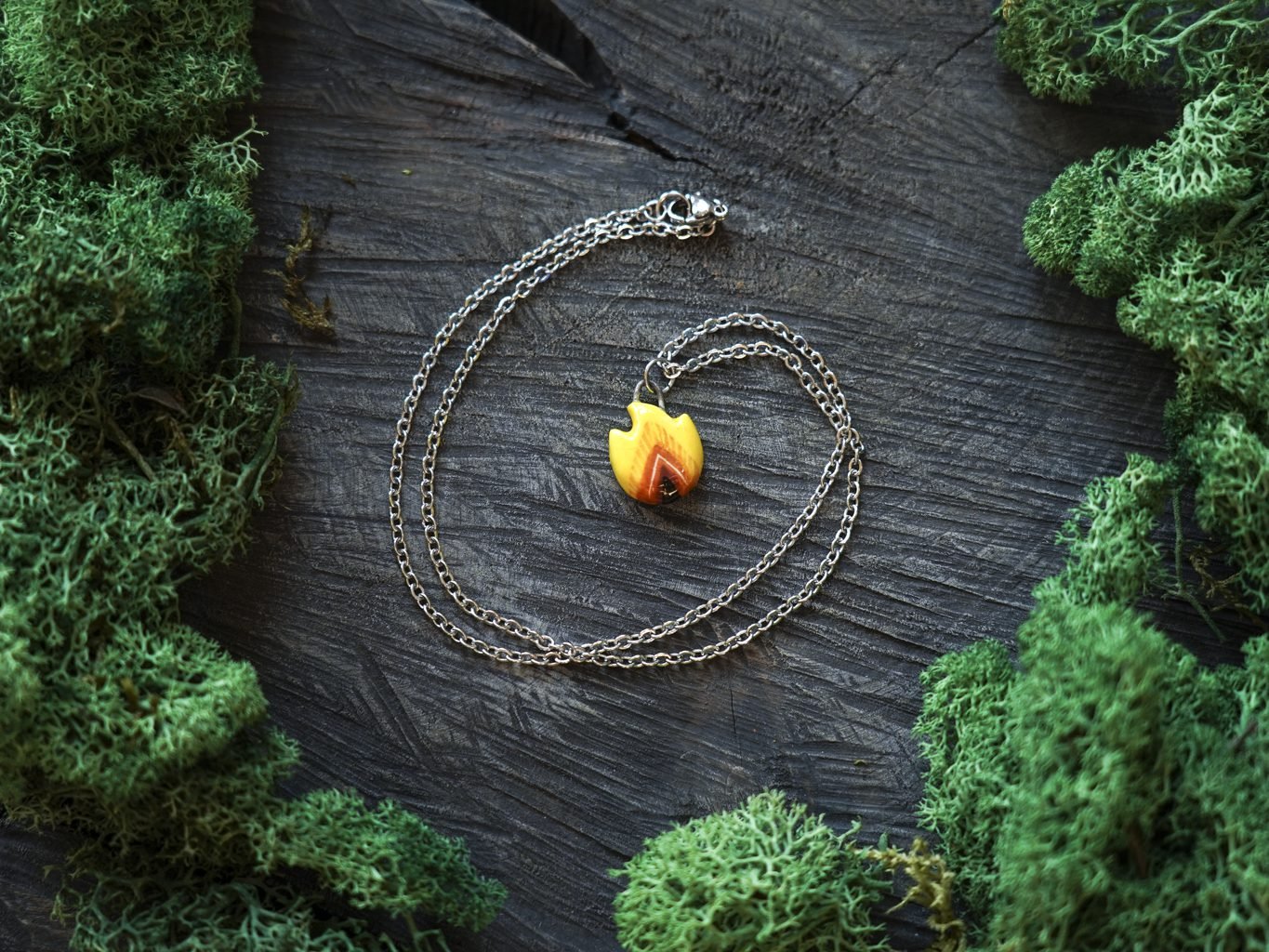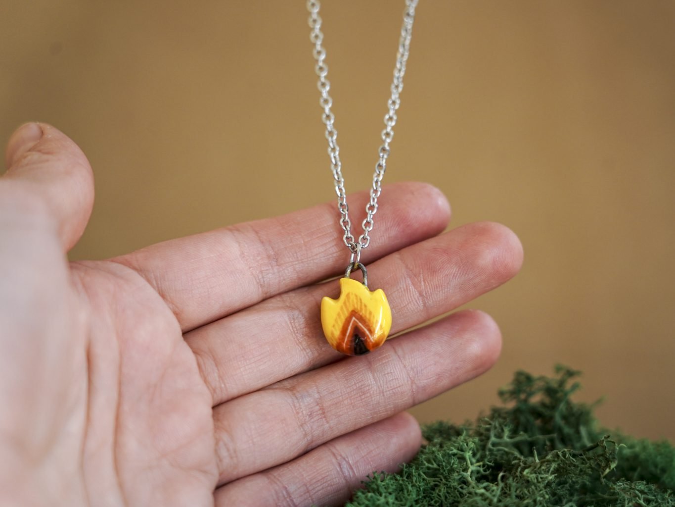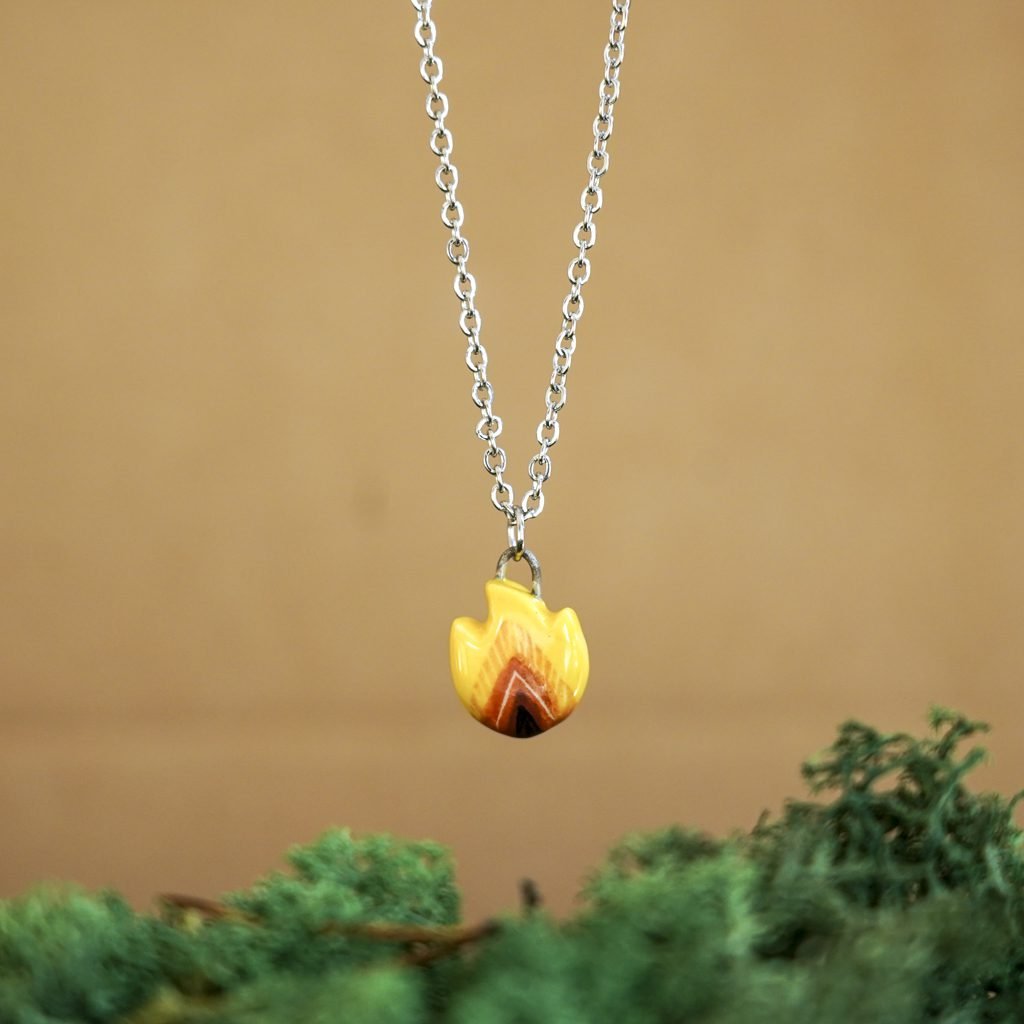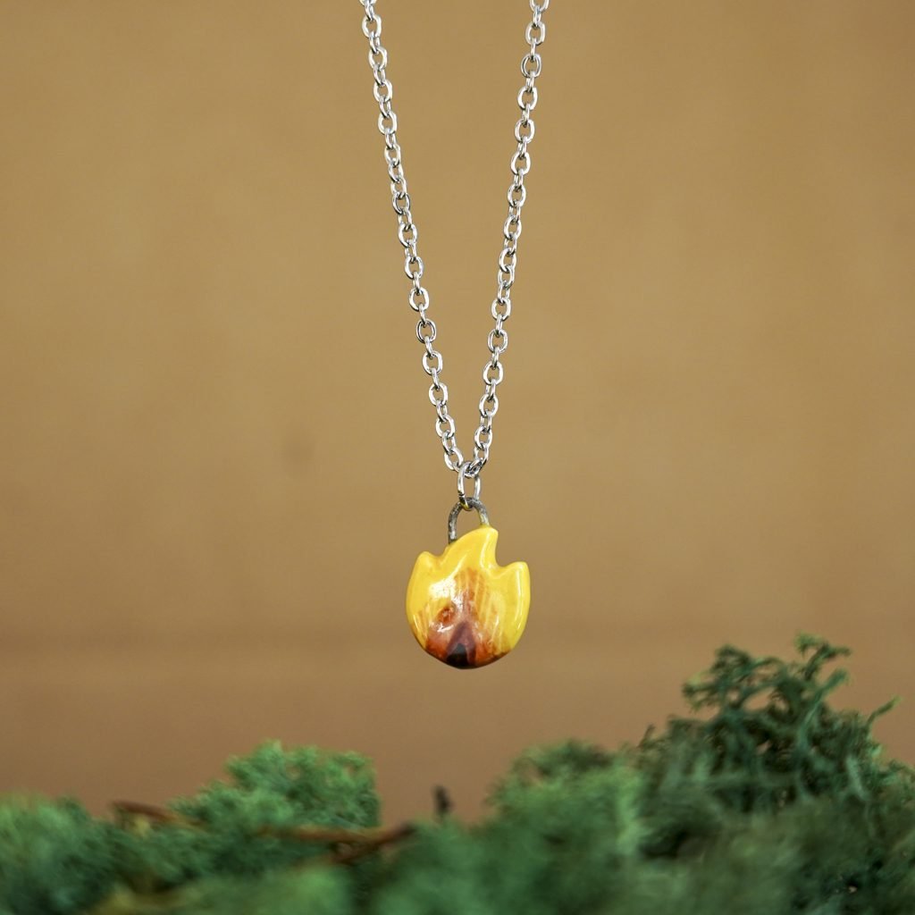 Papuošalai pagaminti iš keramikos. Iš balto molio nulipdytos formos išdegamos 1000 laipsnių temperatūroje, tada išpaišomos rankomis, padengiamos bespalve glazūra ir išdegamos antrąkart.