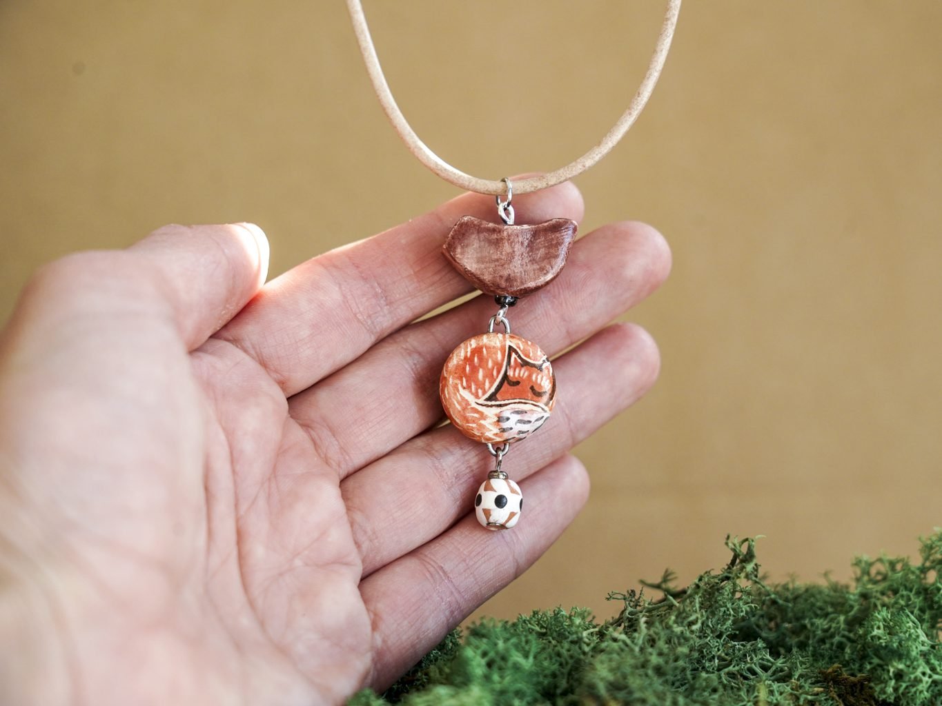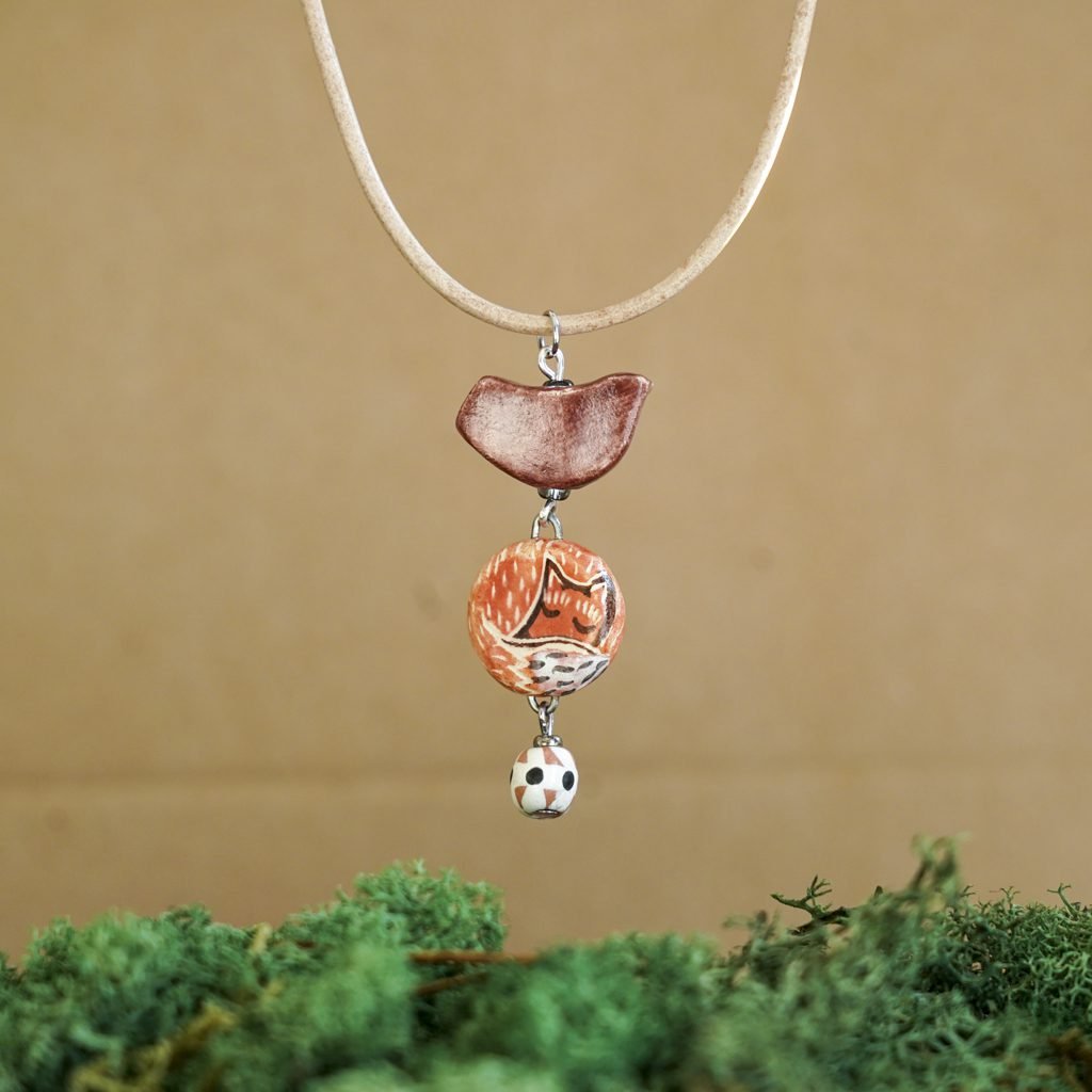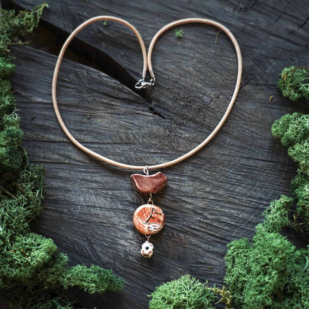 Papuošalai pagaminti iš keramikos. Iš balto molio nulipdytos formos išdegamos 1000 laipsnių temperatūroje, tada išpaišomos rankomis, padengiamos bespalve glazūra ir išdegamos antrąkart.