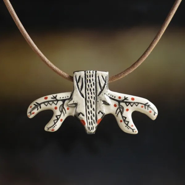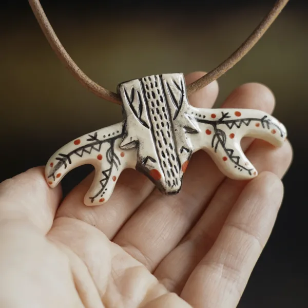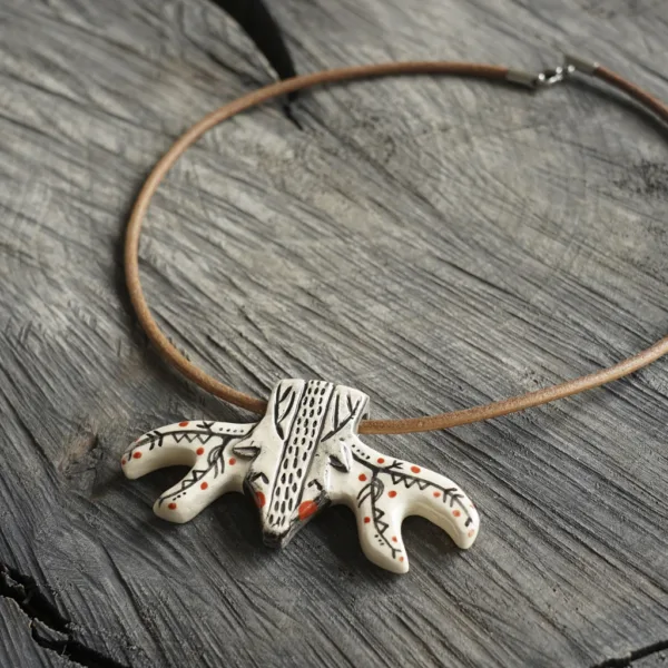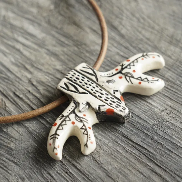 Papuošalai pagaminti iš keramikos. Iš balto molio nulipdytos formos išdegamos 1000 laipsnių temperatūroje, tada išpaišomos rankomis, padengiamos bespalve glazūra ir išdegamos antrąkart.