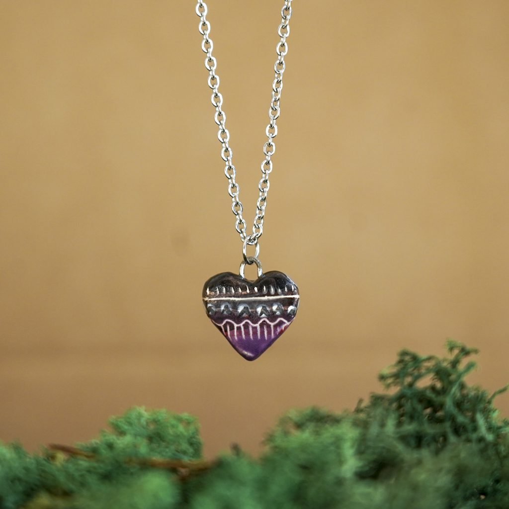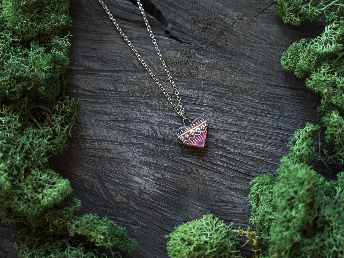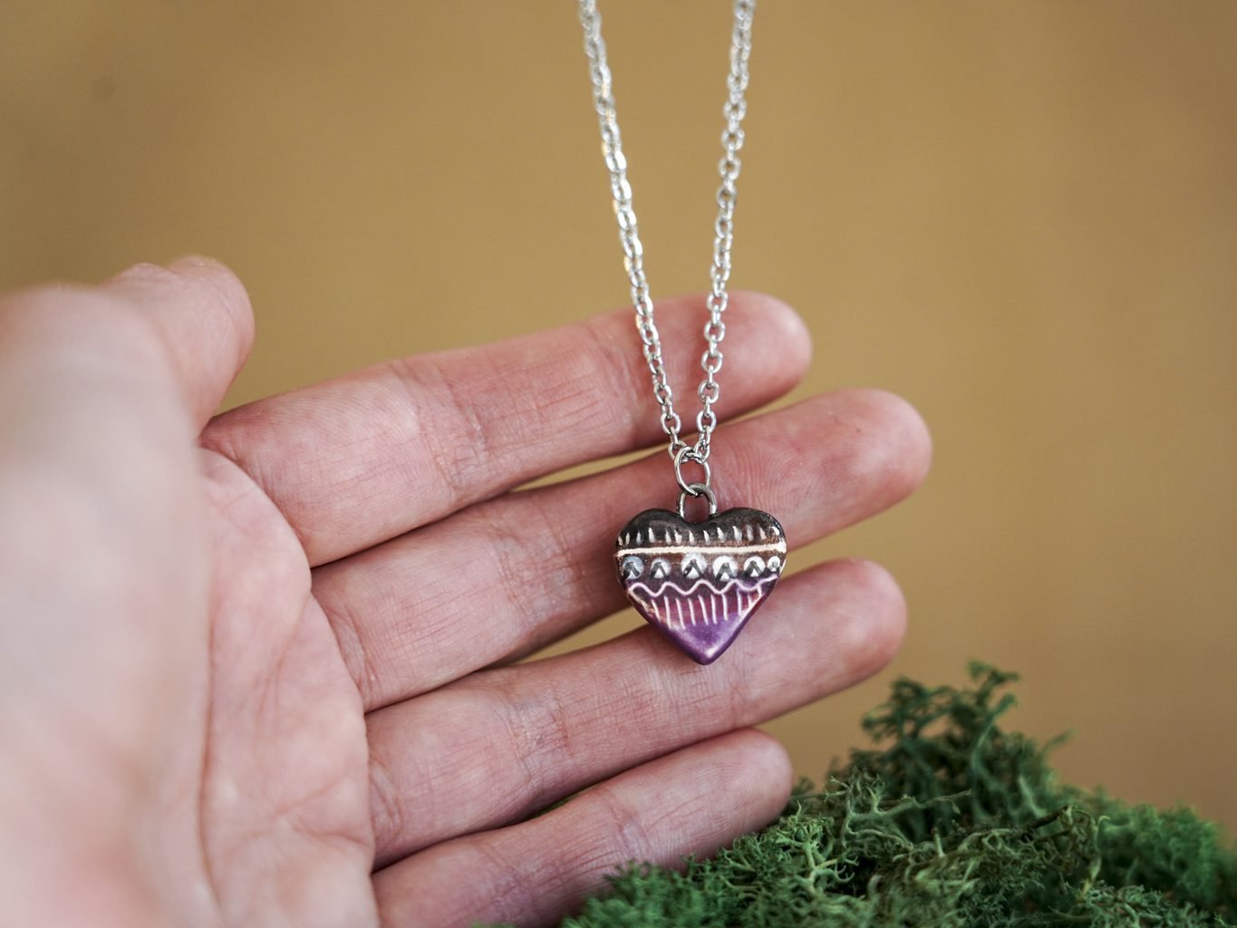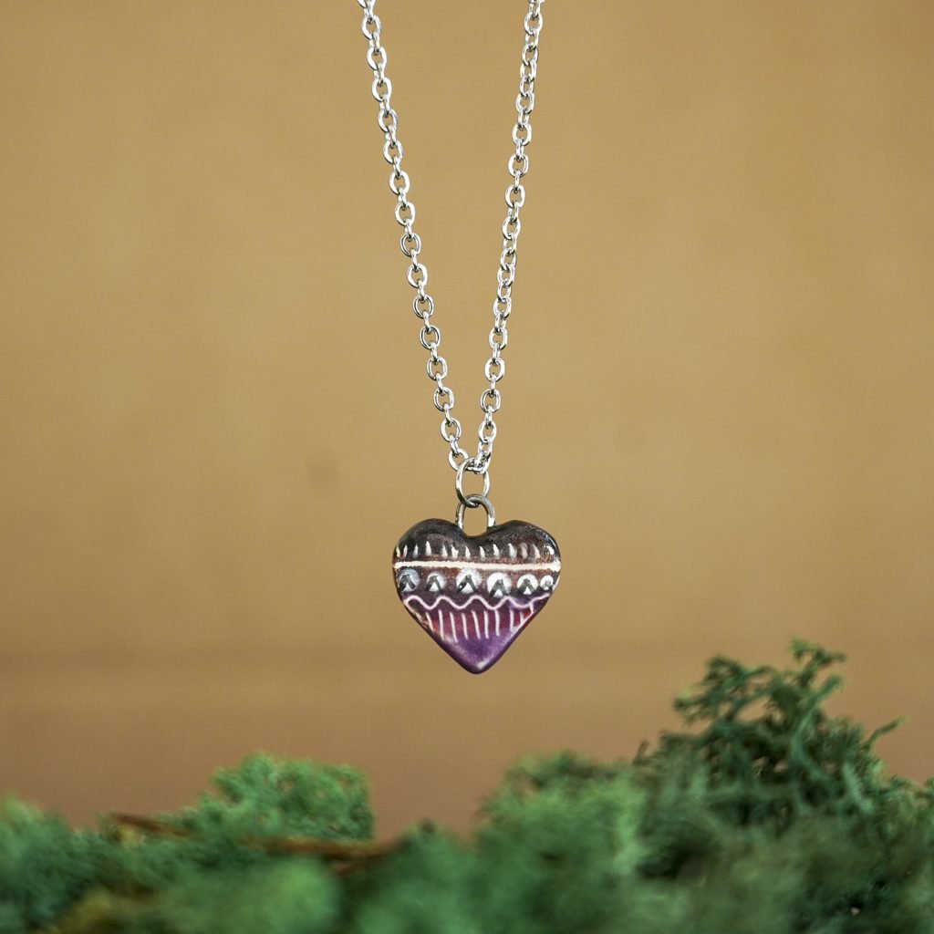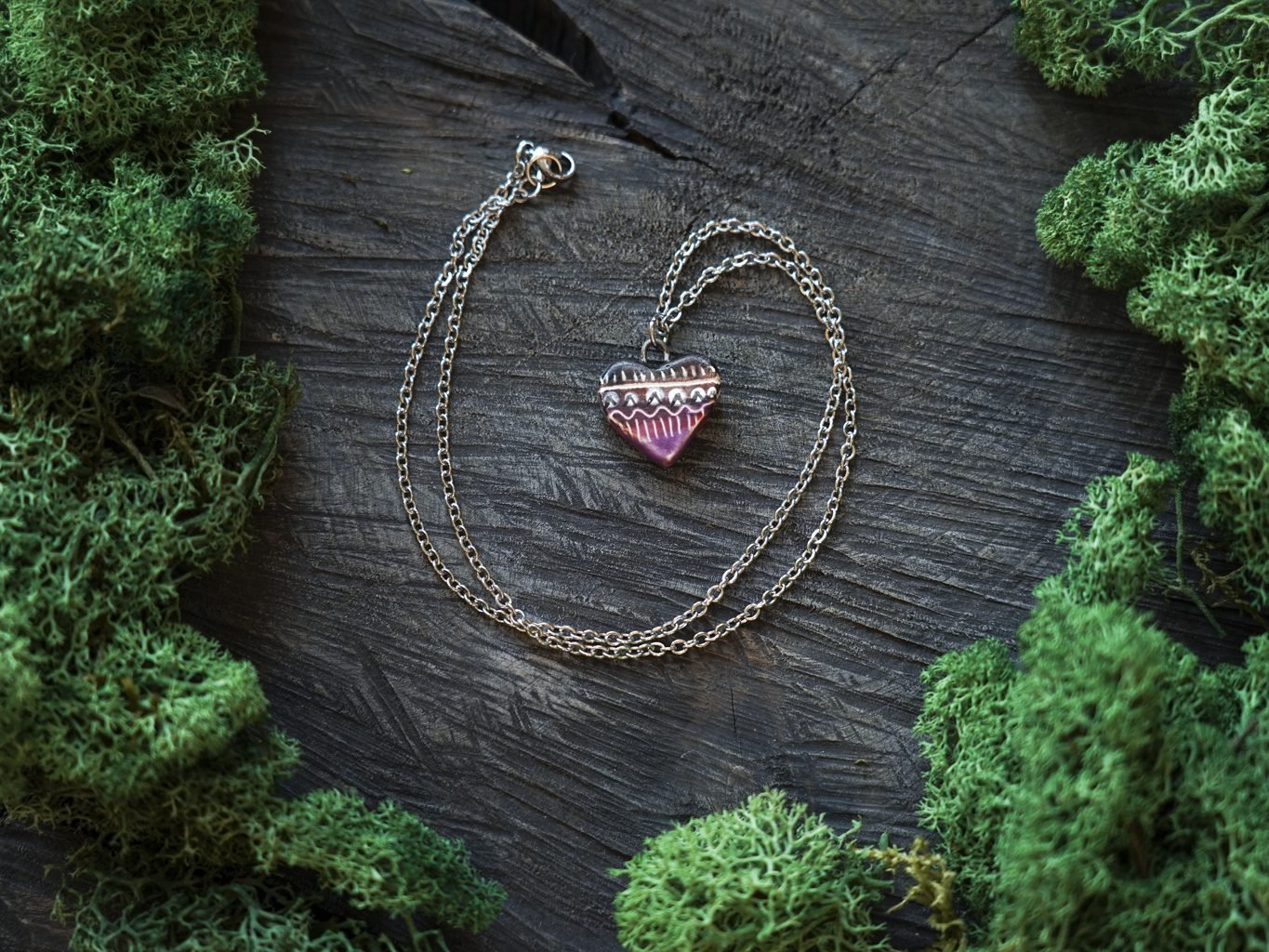 Papuošalai pagaminti iš keramikos. Iš balto molio nulipdytos formos išdegamos 1000 laipsnių temperatūroje, tada išpaišomos rankomis, padengiamos bespalve glazūra ir išdegamos antrąkart.