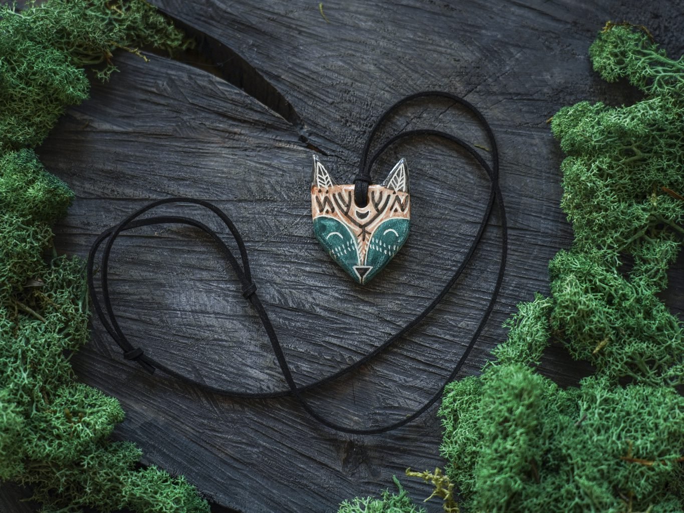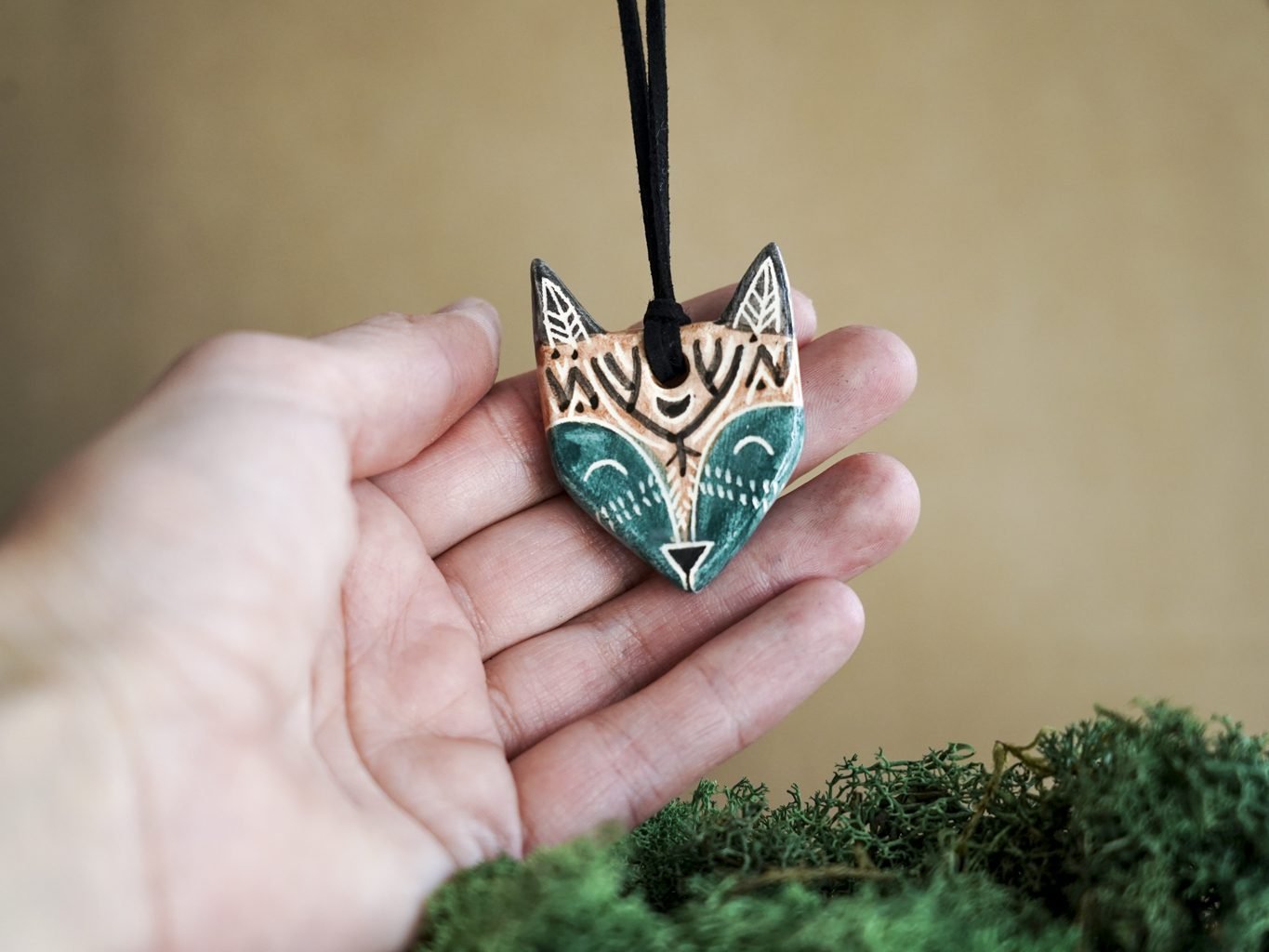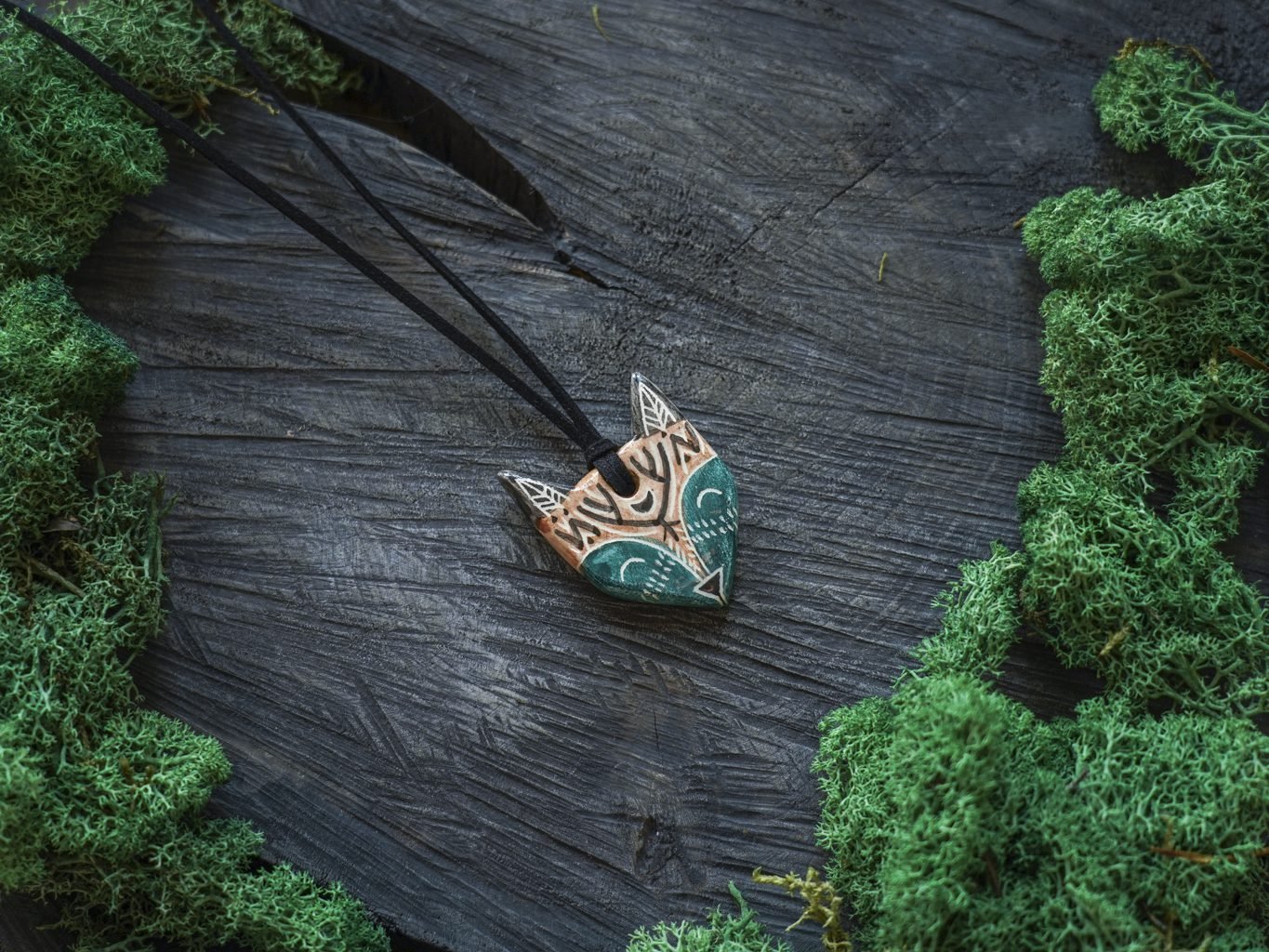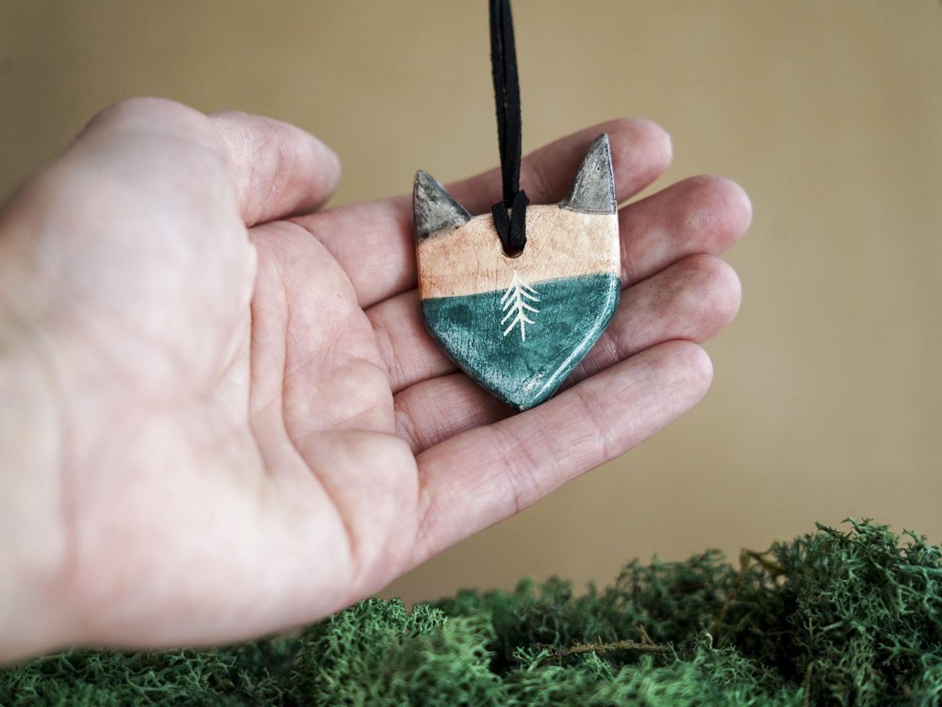 Pakabukas pakabintas ant odinės virvelės