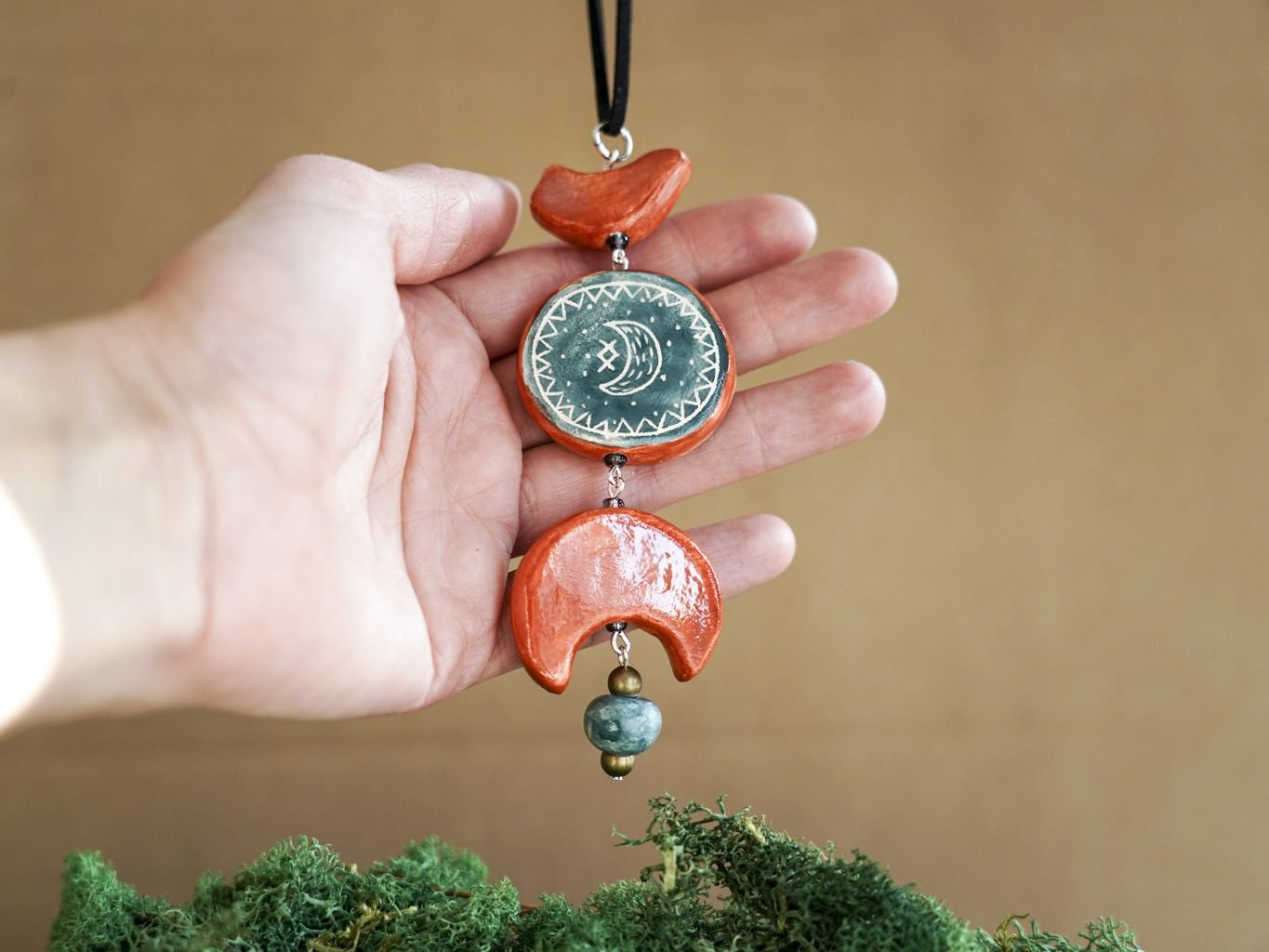 Pakabukas pakabintas ant odinės virvelės