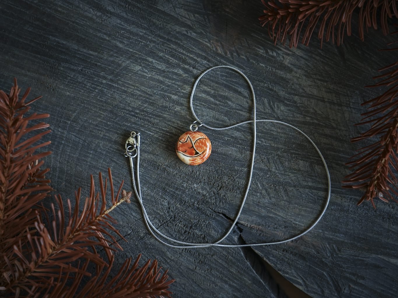 Papuošalai pagaminti iš keramikos. Iš balto molio nulipdytos formos išdegamos 1000 laipsnių temperatūroje, tada išpaišomos rankomis, padengiamos bespalve glazūra ir išdegamos antrąkart.