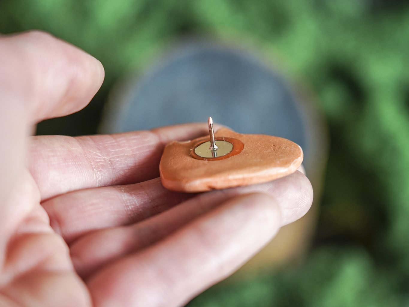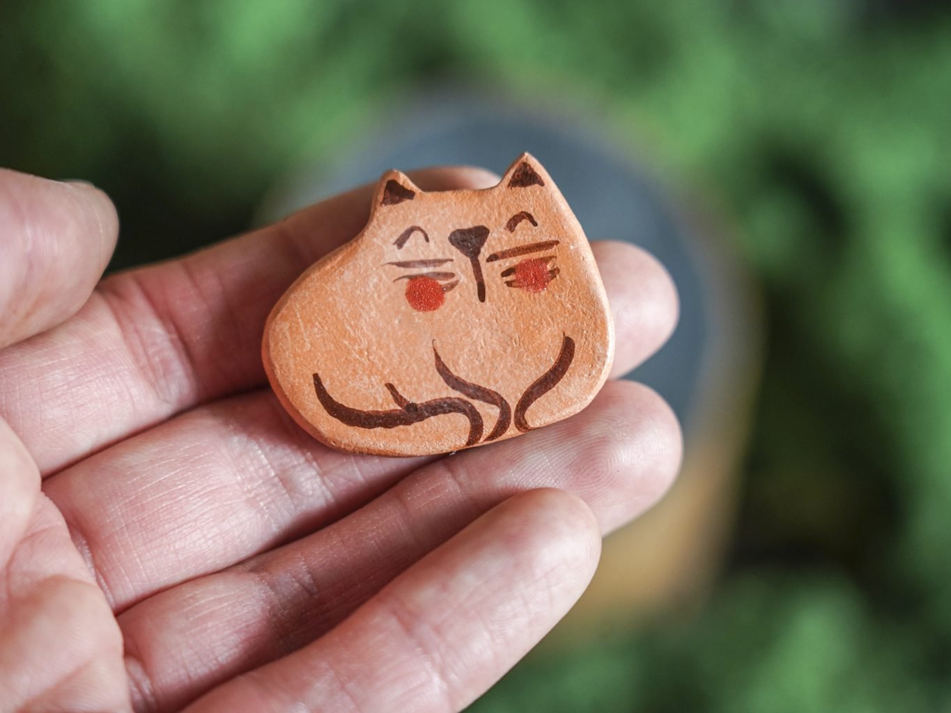Papuošalai pagaminti iš keramikos. Iš molio nulipdytos formos išdegamos 1000 laipsnių temperatūroje, tada išpaišomos rankomis, padengiamos bespalve glazūra ir išdegamos antrąkart. Metalinė ženkliuko adatėlė pagaminta iš nerūdijančio plieno, kitoje pusėje užspaudžiama tvirta kietos gumos detale.