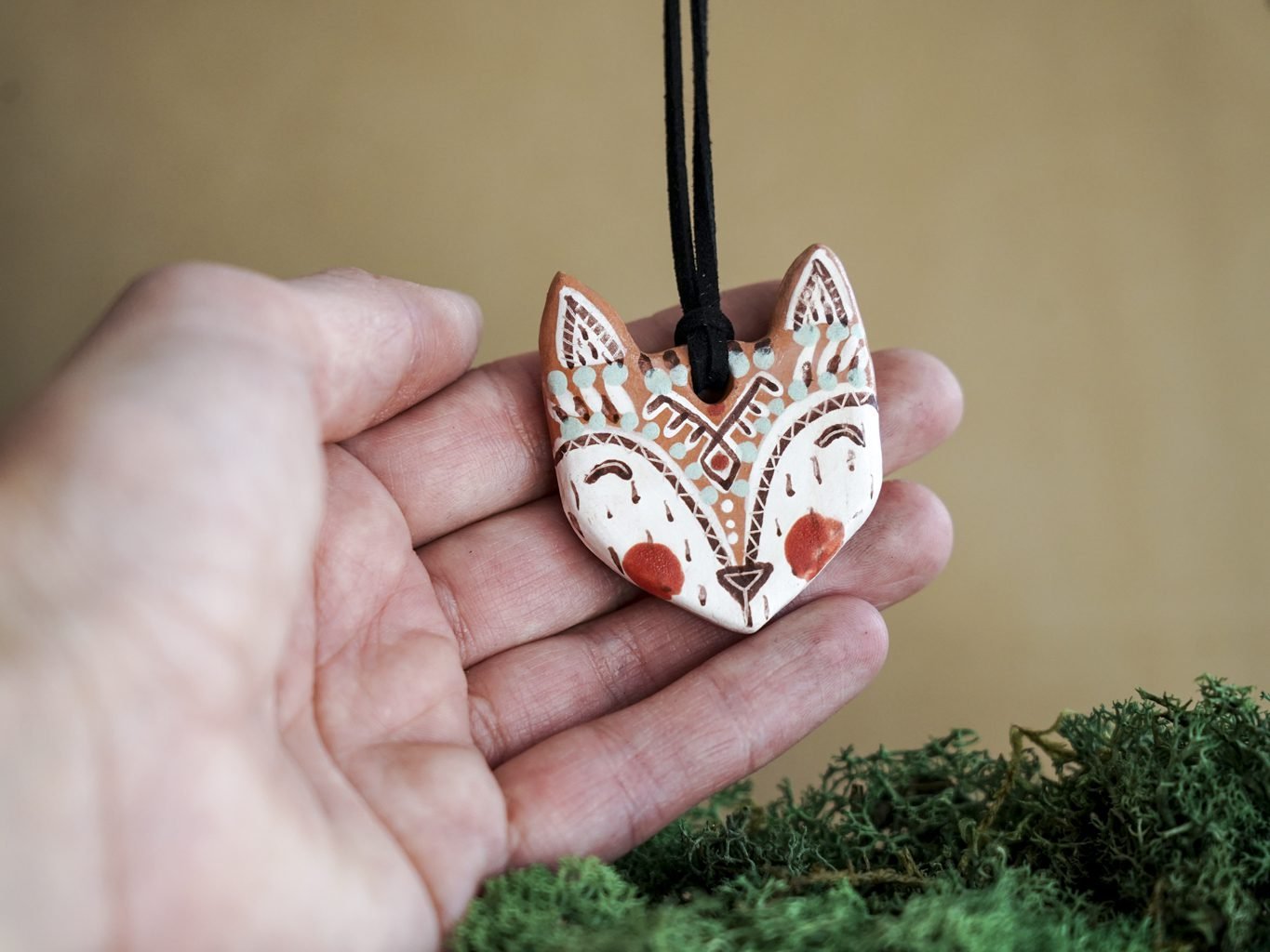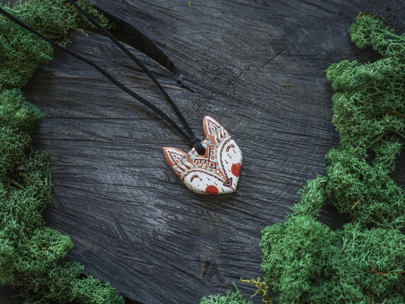 Papuošalai pagaminti iš keramikos. Iš balto molio nulipdytos formos išdegamos 1000 laipsnių temperatūroje, tada išpaišomos rankomis, padengiamos bespalve glazūra ir išdegamos antrąkart.