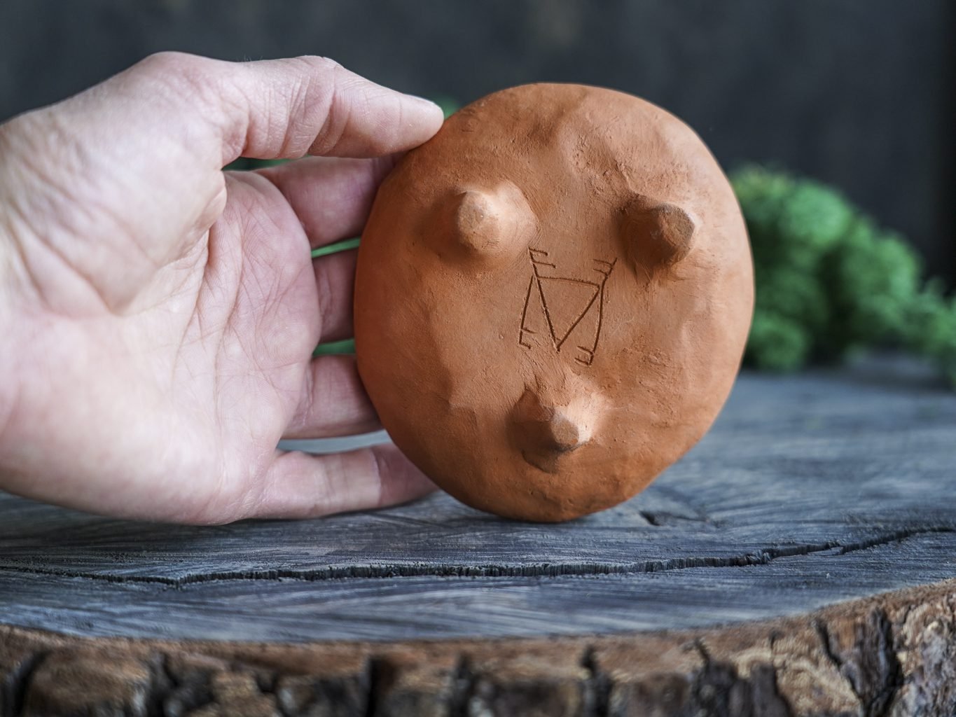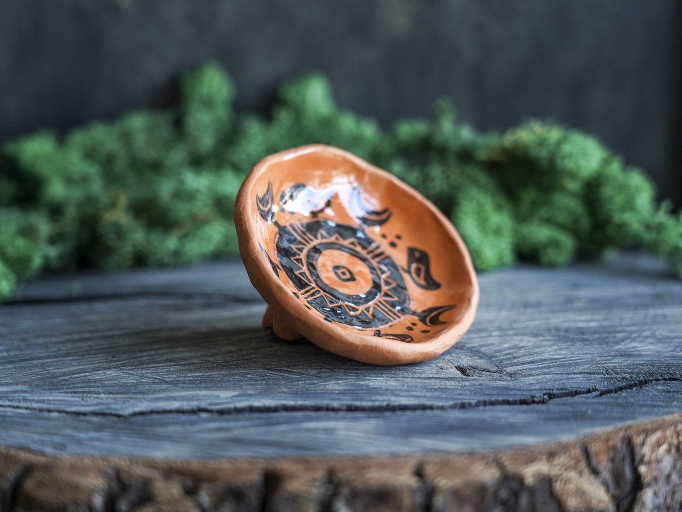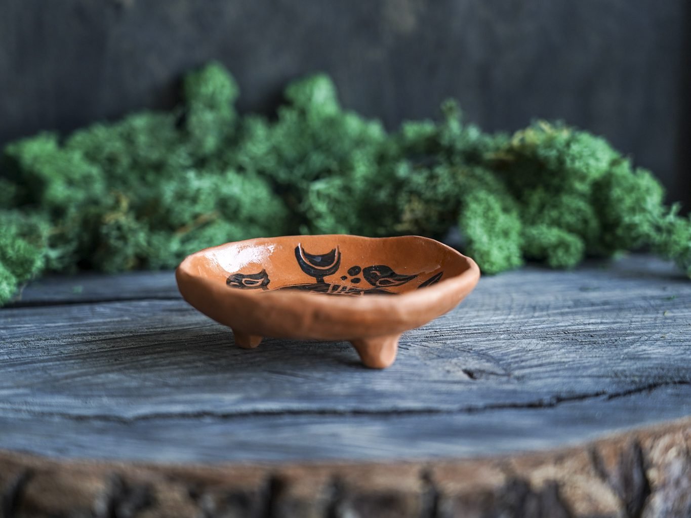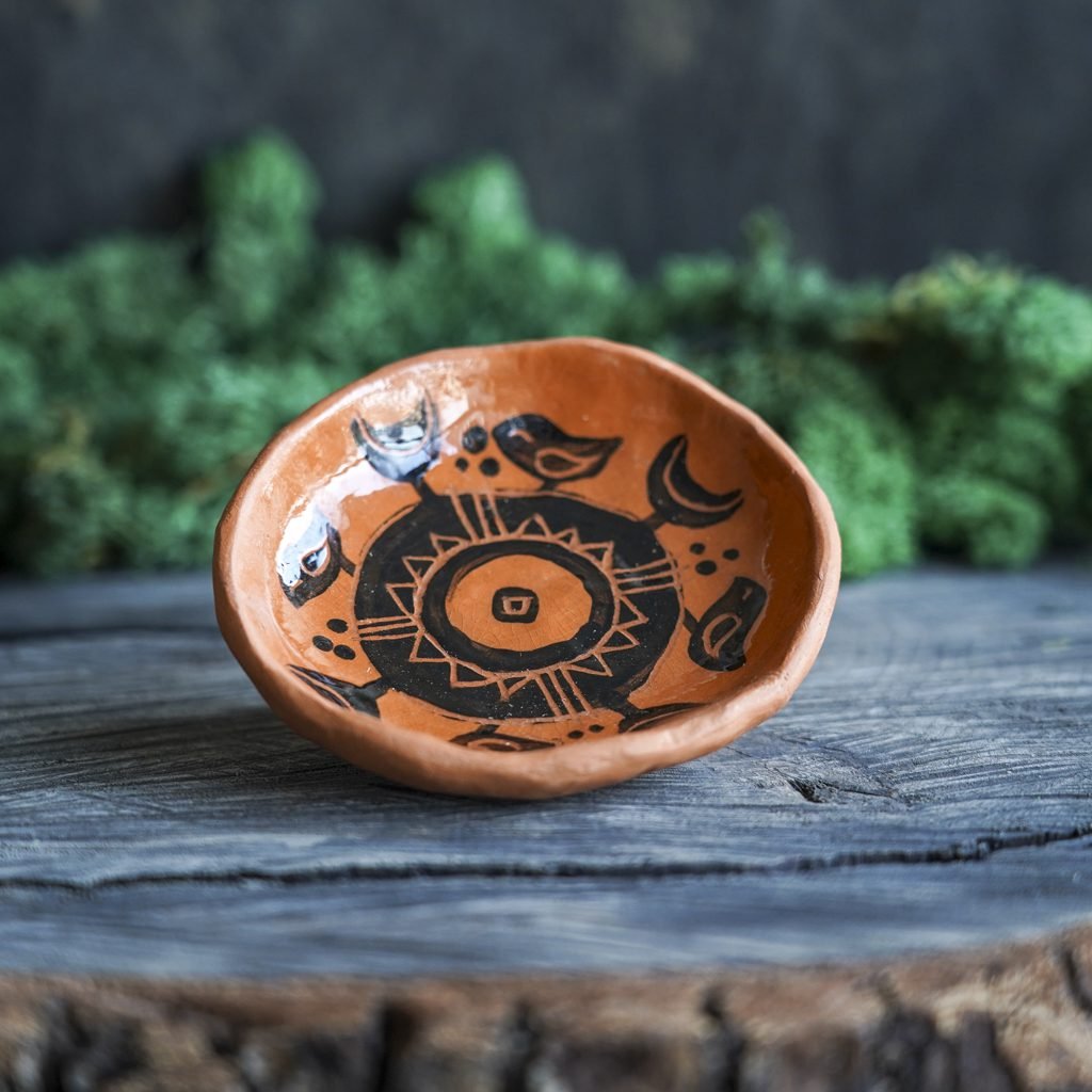 Šis indas lipdytas rankomis iš raudono molio. Tuomet išdegtas pirmąjį kartą keramikos krosnyje, išpieštas poglazūriniais dažais, nuglazūruotas indelio vidus ir antrą kartą išdegtas krosnyje. Dekoravimui naudota juodafigūrės keramikos technika, žinoma nuo seno, kai natūralaus raudono molio fone juodais dažais išpiešiamos figūros ir jos padekoruojamos išraižant piešinius rėžtuku. Indo išorė neglazūruota, natūralaus molio, nerekomenduojama plauti indaplovėje.