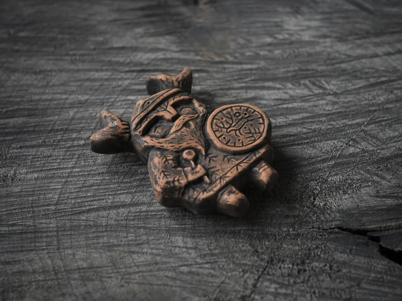 Šio magneto forma – Monų šamanas, jau tapęs mylimu personažu Monų pasaulyje. Pirmiausia atvaizdas sukurtas atviruko piešiniui, vėliau nugulė ant marškinėlių ir paveikslų. Šįkart įgavo erdvinę formą galinčia įnešti paslaptingo puošnumo jūsų namams – tai magnetas Šamanas.