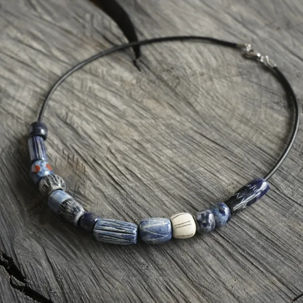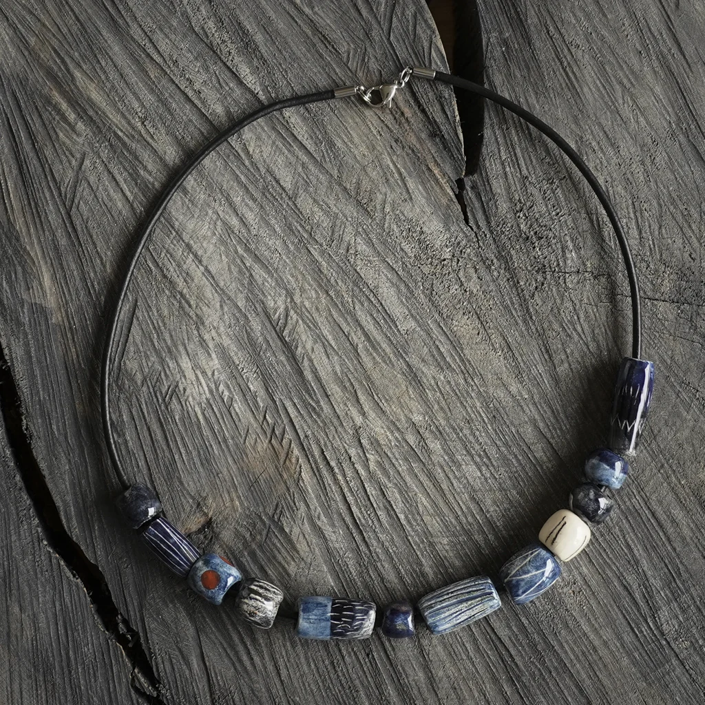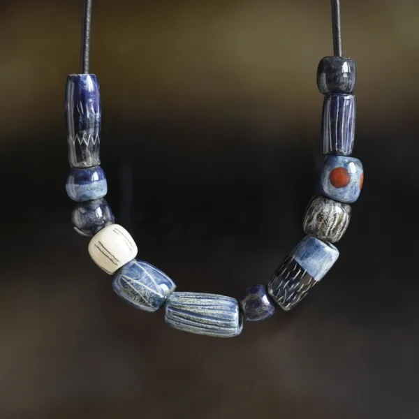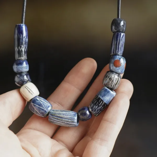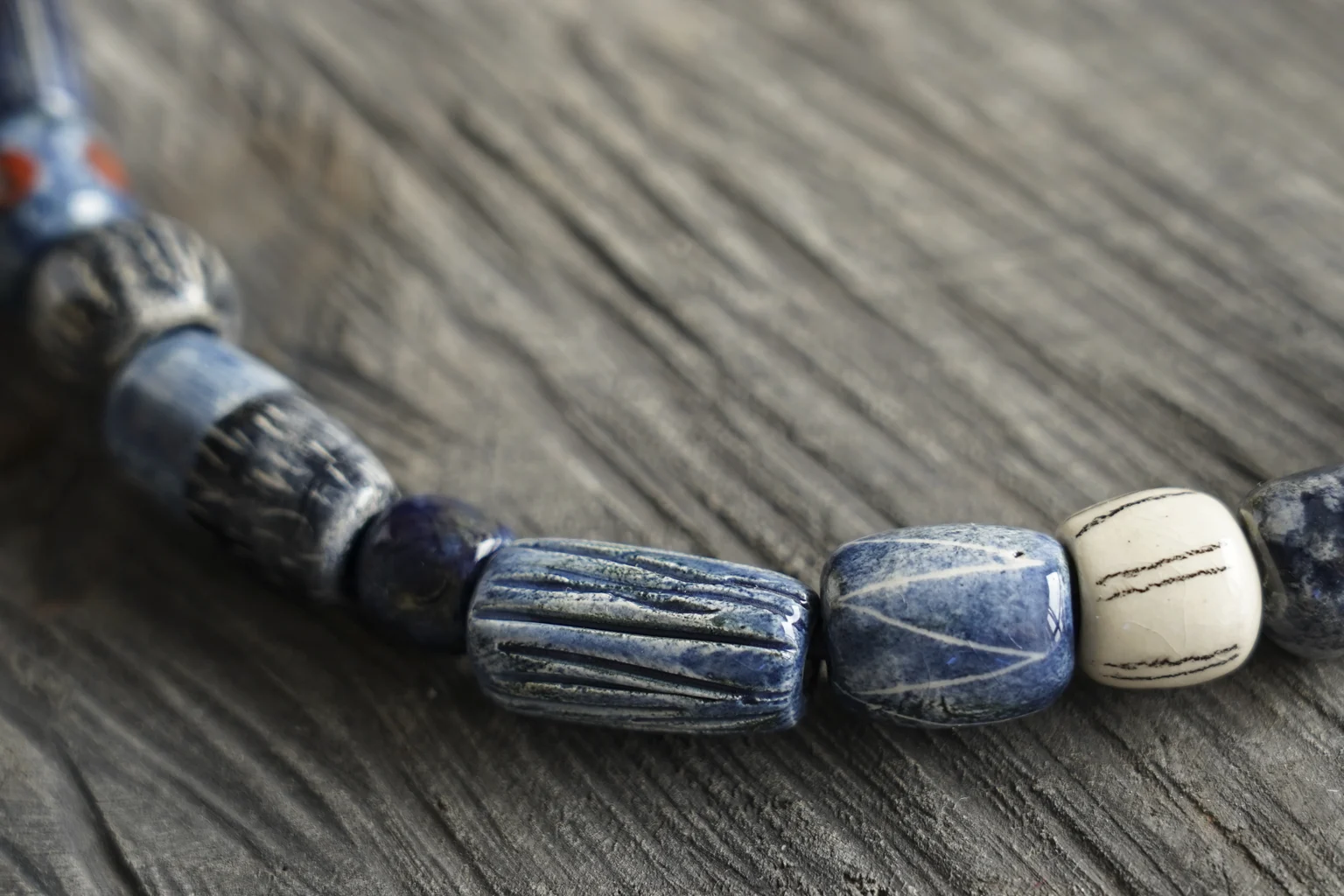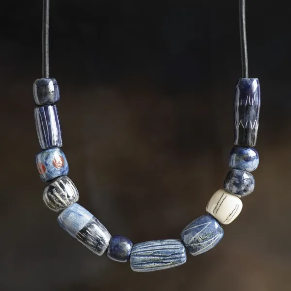 Papuošalai pagaminti iš keramikos. Iš balto molio nulipdytos formos išdegamos 1000 laipsnių temperatūroje, tada išpaišomos rankomis, padengiamos bespalve glazūra ir išdegamos antrąkart.