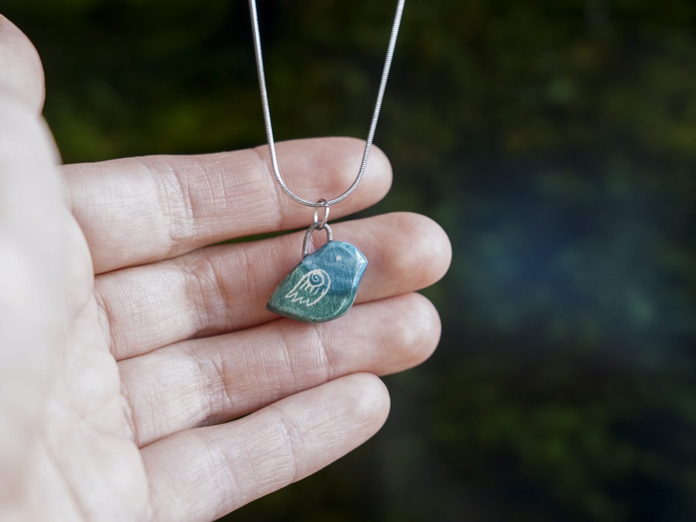 Papuošalai pagaminti iš keramikos. Iš balto molio nulipdytos formos išdegamos 1000 laipsnių temperatūroje, tada išpaišomos rankomis, padengiamos bespalve glazūra ir išdegamos antrąkart.