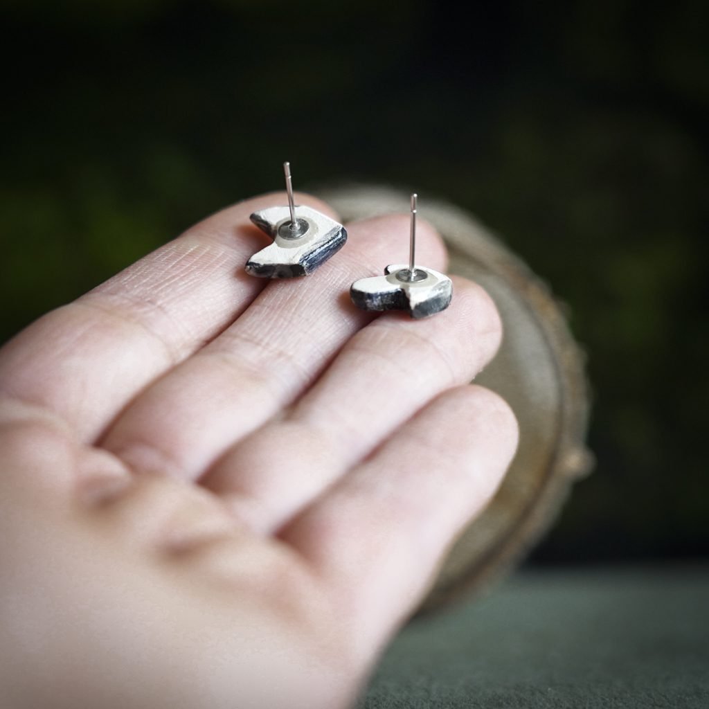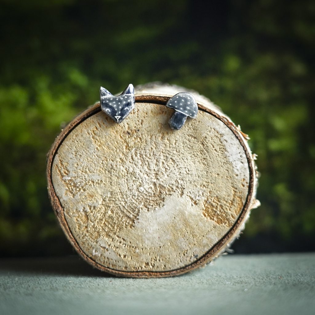 Papuošalai pagaminti iš keramikos. Iš balto molio nulipdytos formos išdegamos 1000 laipsnių temperatūroje, tada išpaišomos rankomis, padengiamos bespalve glazūra ir išdegamos antrąkart. Auskarų adatėlės pagamintos iš nerūdijančio plieno.