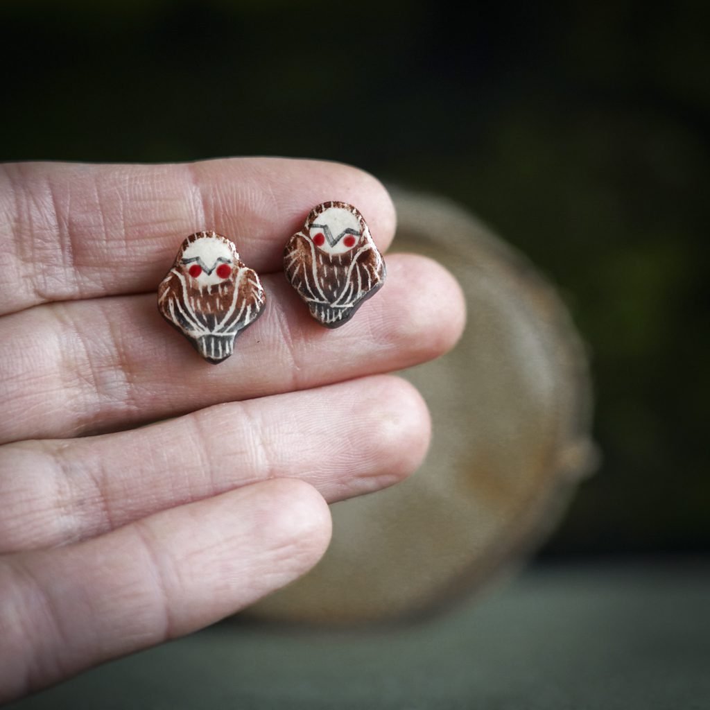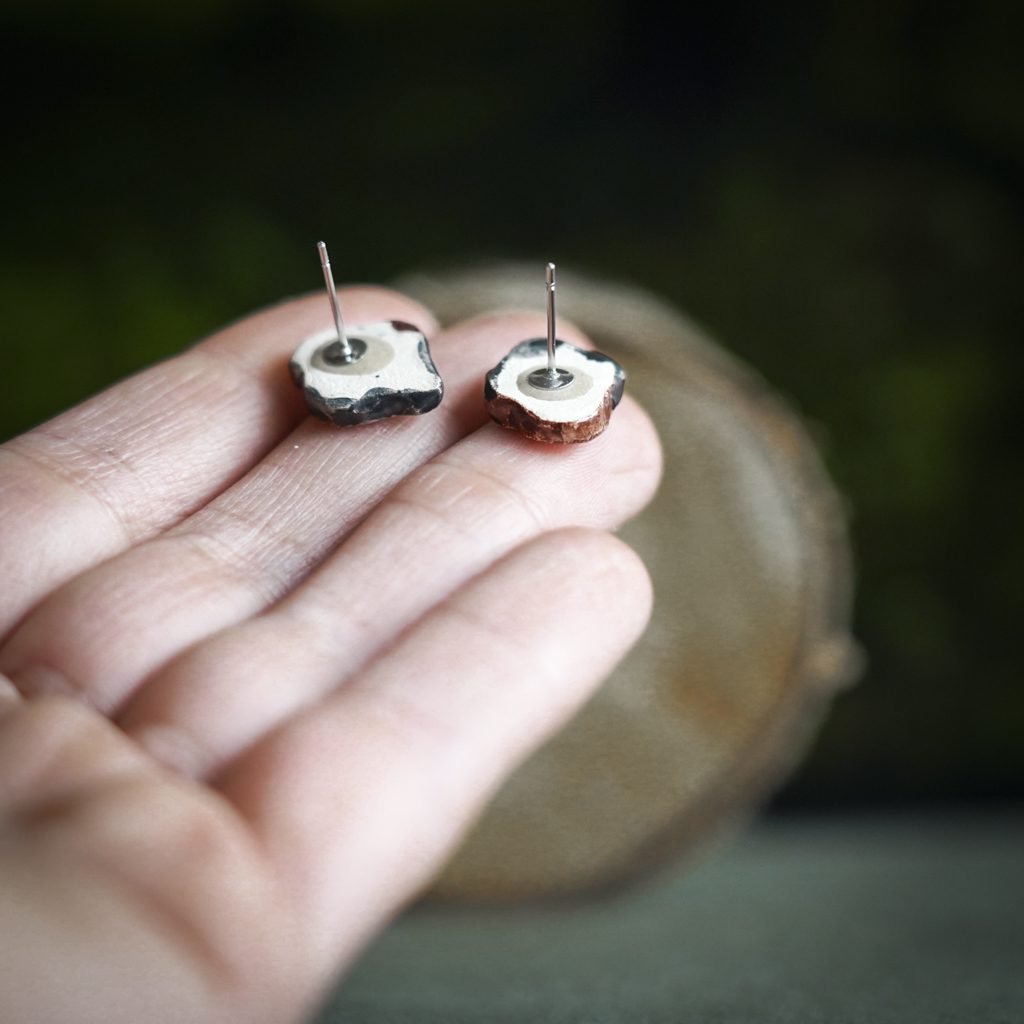 Papuošalai pagaminti iš keramikos. Iš balto molio nulipdytos formos išdegamos 1000 laipsnių temperatūroje, tada išpaišomos rankomis, padengiamos bespalve glazūra ir išdegamos antrąkart. Auskarų adatėlės pagamintos iš nerūdijančio plieno.