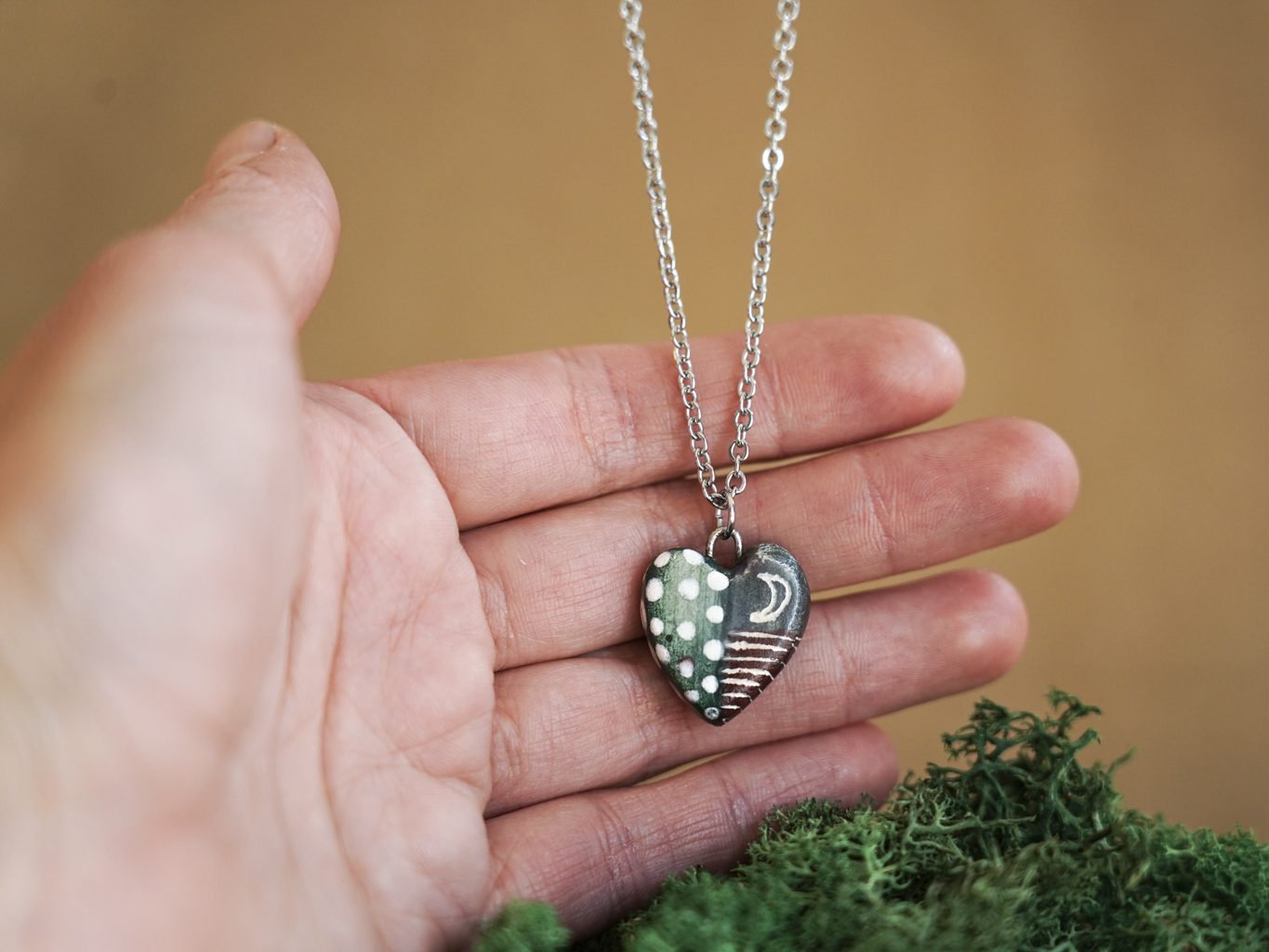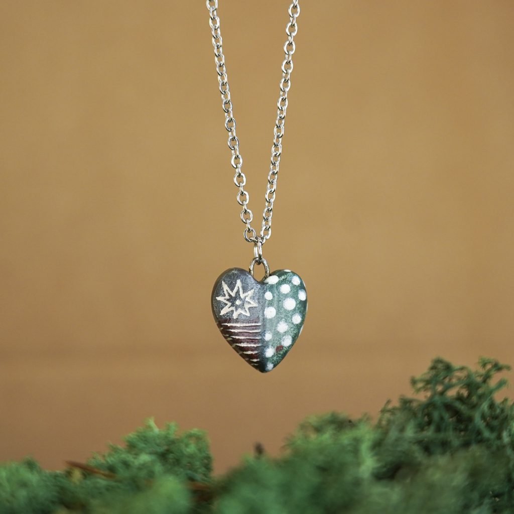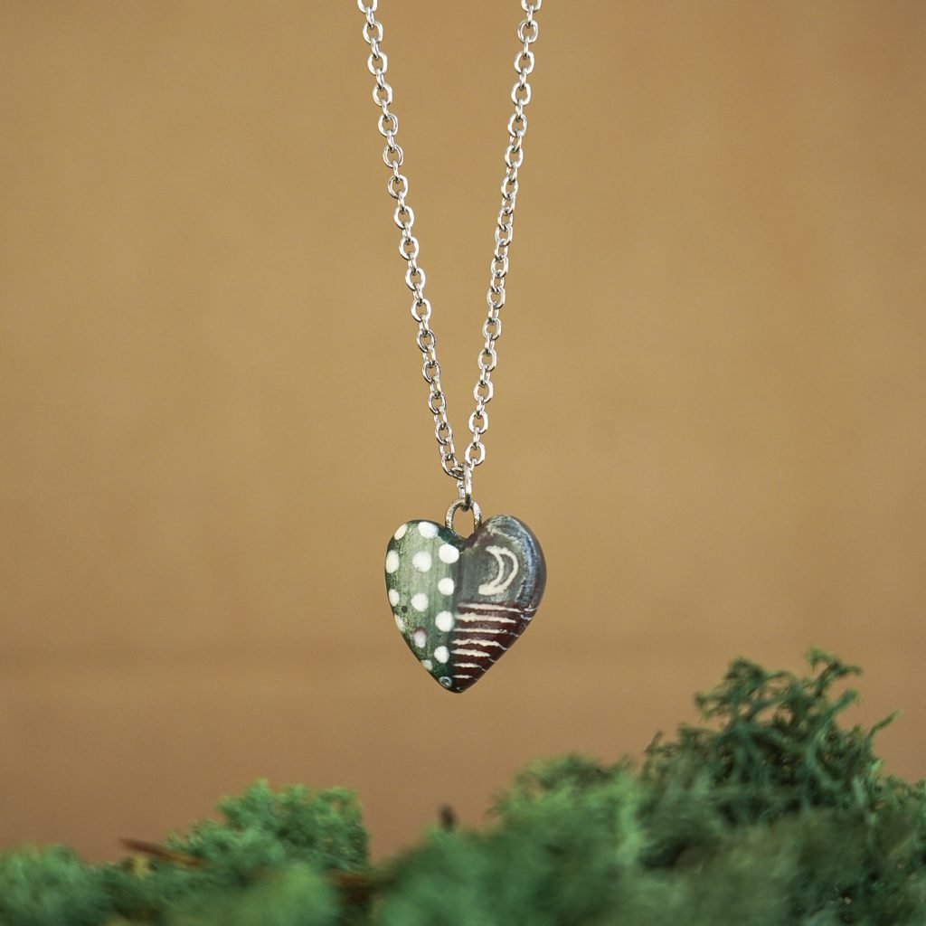 Papuošalai pagaminti iš keramikos. Iš balto molio nulipdytos formos išdegamos 1000 laipsnių temperatūroje, tada išpaišomos rankomis, padengiamos bespalve glazūra ir išdegamos antrąkart.