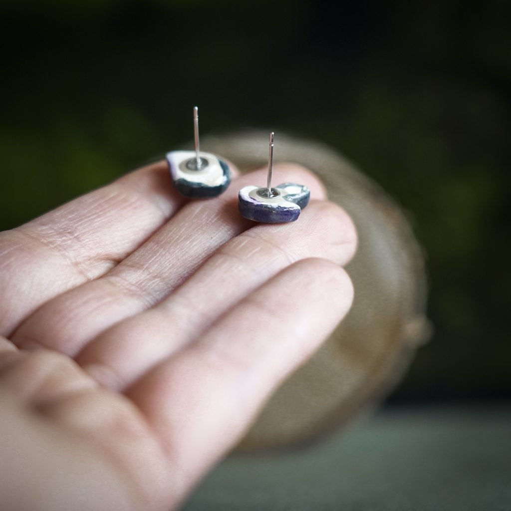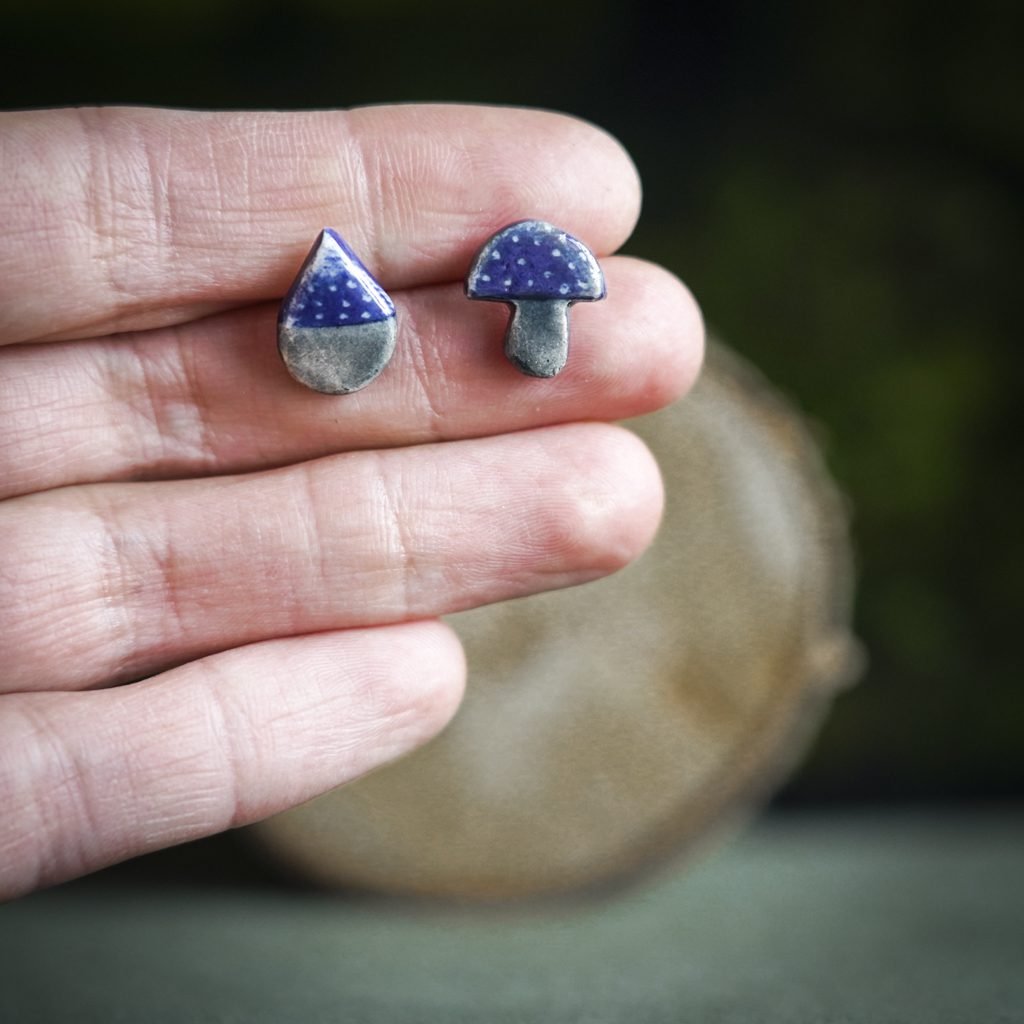 Papuošalai pagaminti iš keramikos. Iš balto molio nulipdytos formos išdegamos 1000 laipsnių temperatūroje, tada išpaišomos rankomis, padengiamos bespalve glazūra ir išdegamos antrąkart. Auskarų adatėlės pagamintos iš nerūdijančio plieno.