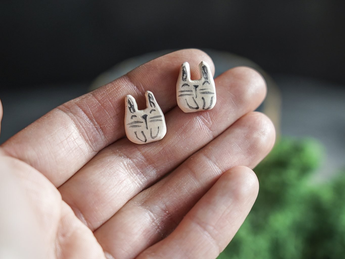 Papuošalai pagaminti iš keramikos. Iš molio nulipdytos formos išdegamos 1000 laipsnių temperatūroje, tada išpaišomos rankomis, padengiamos bespalve glazūra ir išdegamos antrąkart. Auskarų adatėlės pagamintos iš nerūdijančio plieno.