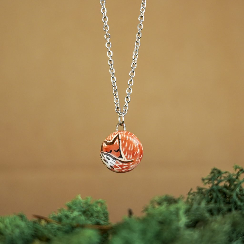 Papuošalai pagaminti iš keramikos. Iš balto molio nulipdytos formos išdegamos 1000 laipsnių temperatūroje, tada išpaišomos rankomis, padengiamos bespalve glazūra ir išdegamos antrąkart.