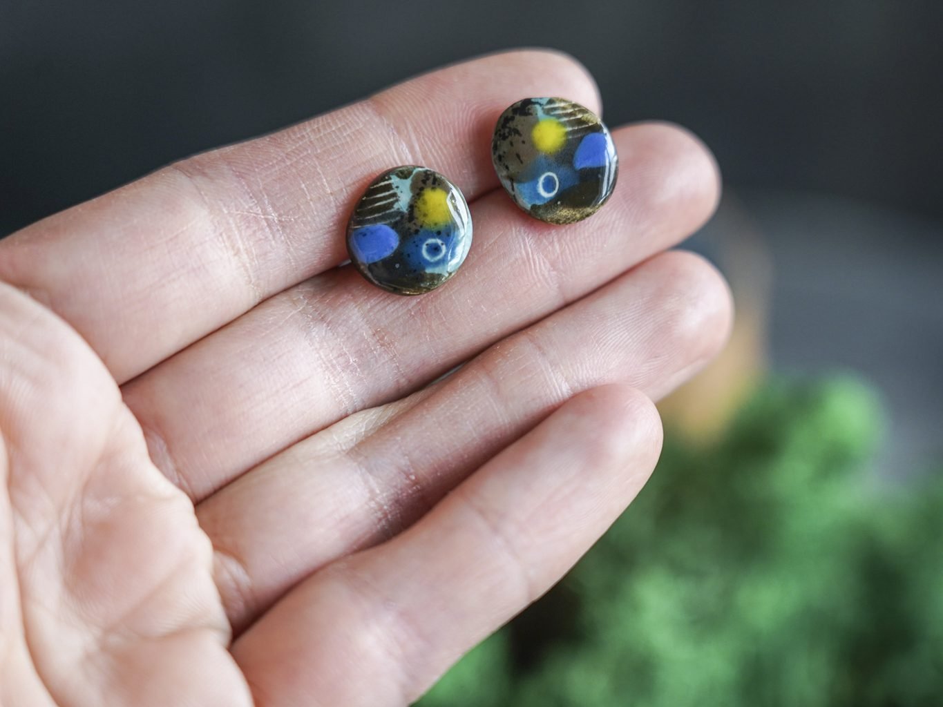 Papuošalai pagaminti iš keramikos. Iš molio nulipdytos formos išdegamos 1000 laipsnių temperatūroje, tada išpaišomos rankomis, padengiamos bespalve glazūra ir išdegamos antrąkart. Auskarų adatėlės pagamintos iš nerūdijančio plieno.