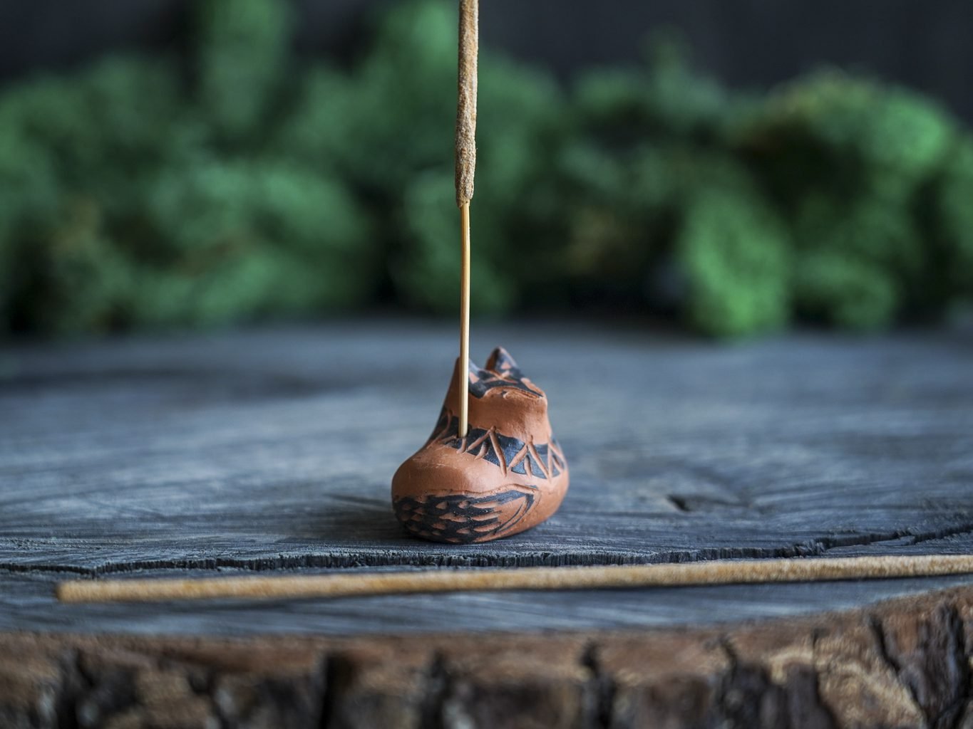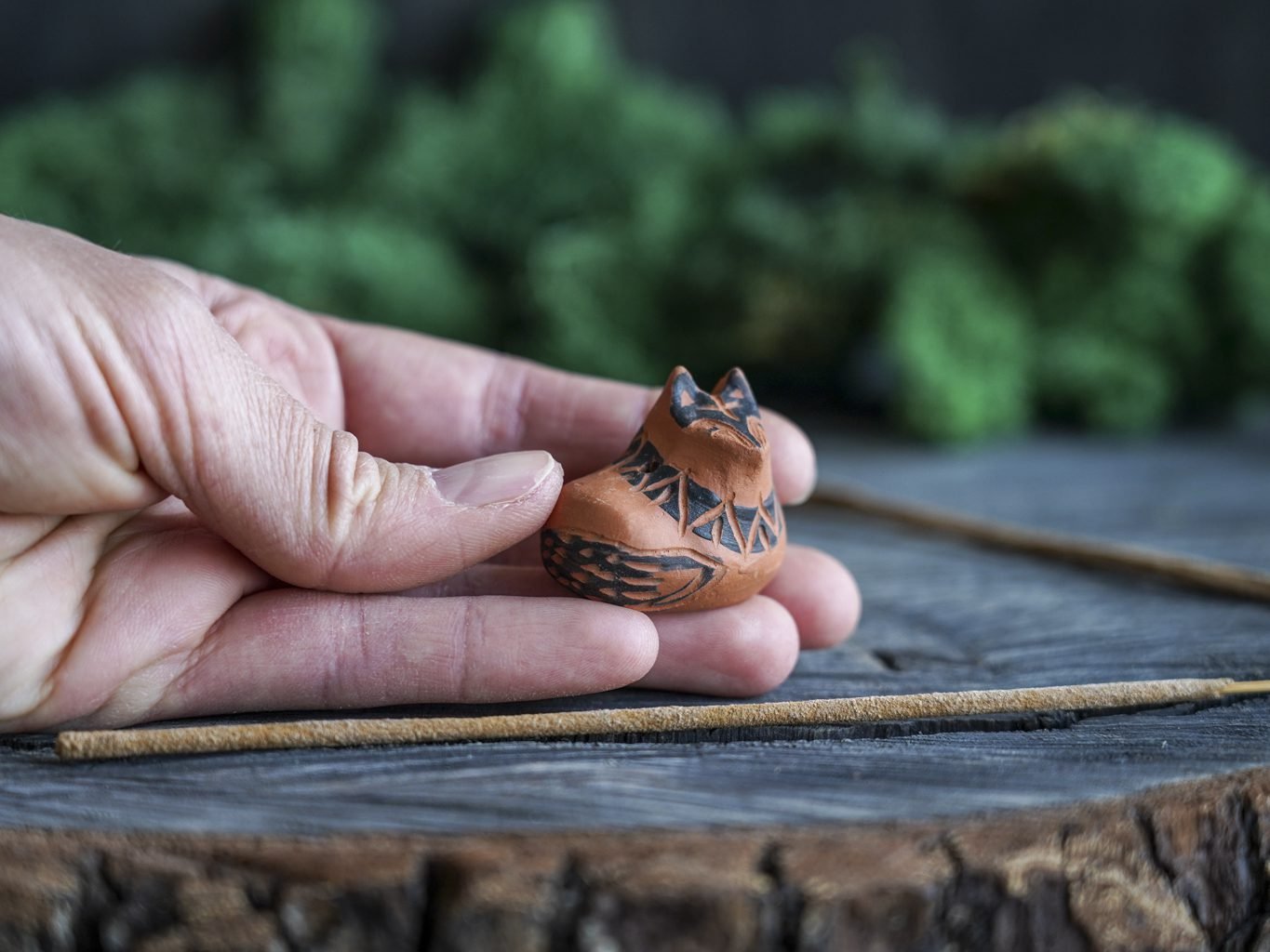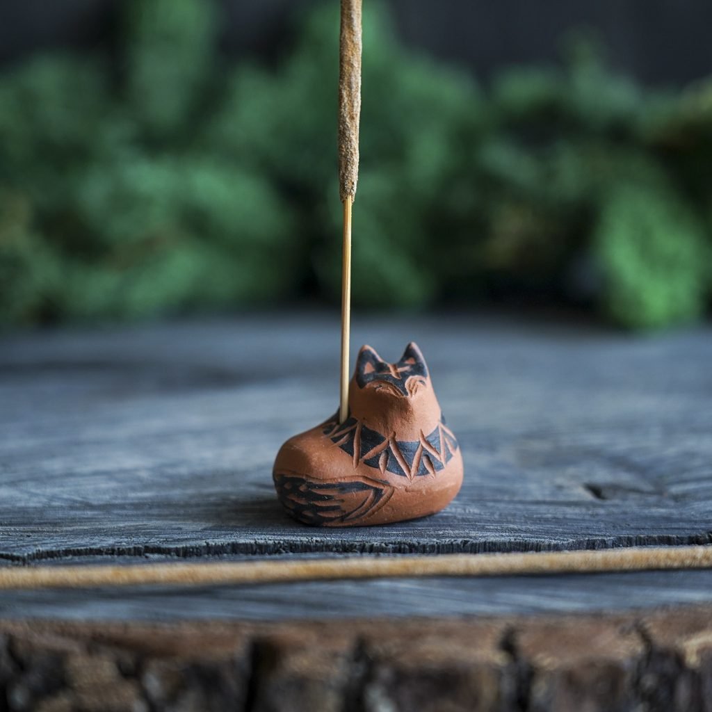 Ši smilkalinė lipdyta rankomis iš raudono molio. Tuomet išdegta pirmąjį kartą keramikos krosnyje, išpiešta poglazūriniais dažais ir antrą kartą išdegta krosnyje. Dekoravimui naudota juodafigūrės keramikos technika, žinoma nuo seno, kai natūralaus raudono molio fone juodais dažais išpiešiamos figūros ir jos padekoruojamos išraižant piešinius rėžtuku.