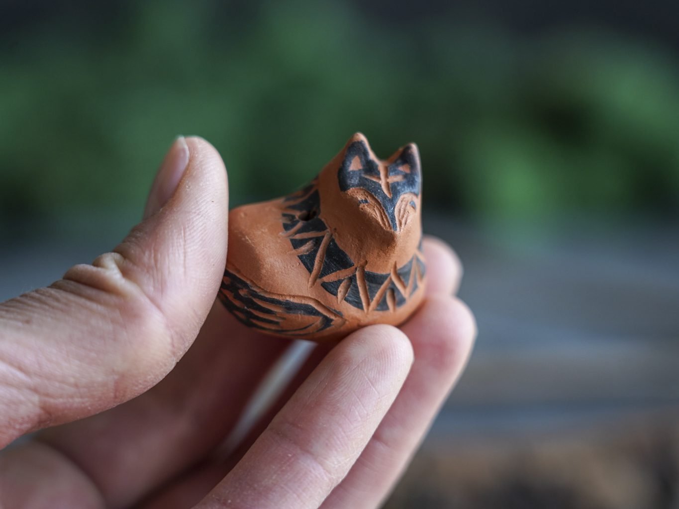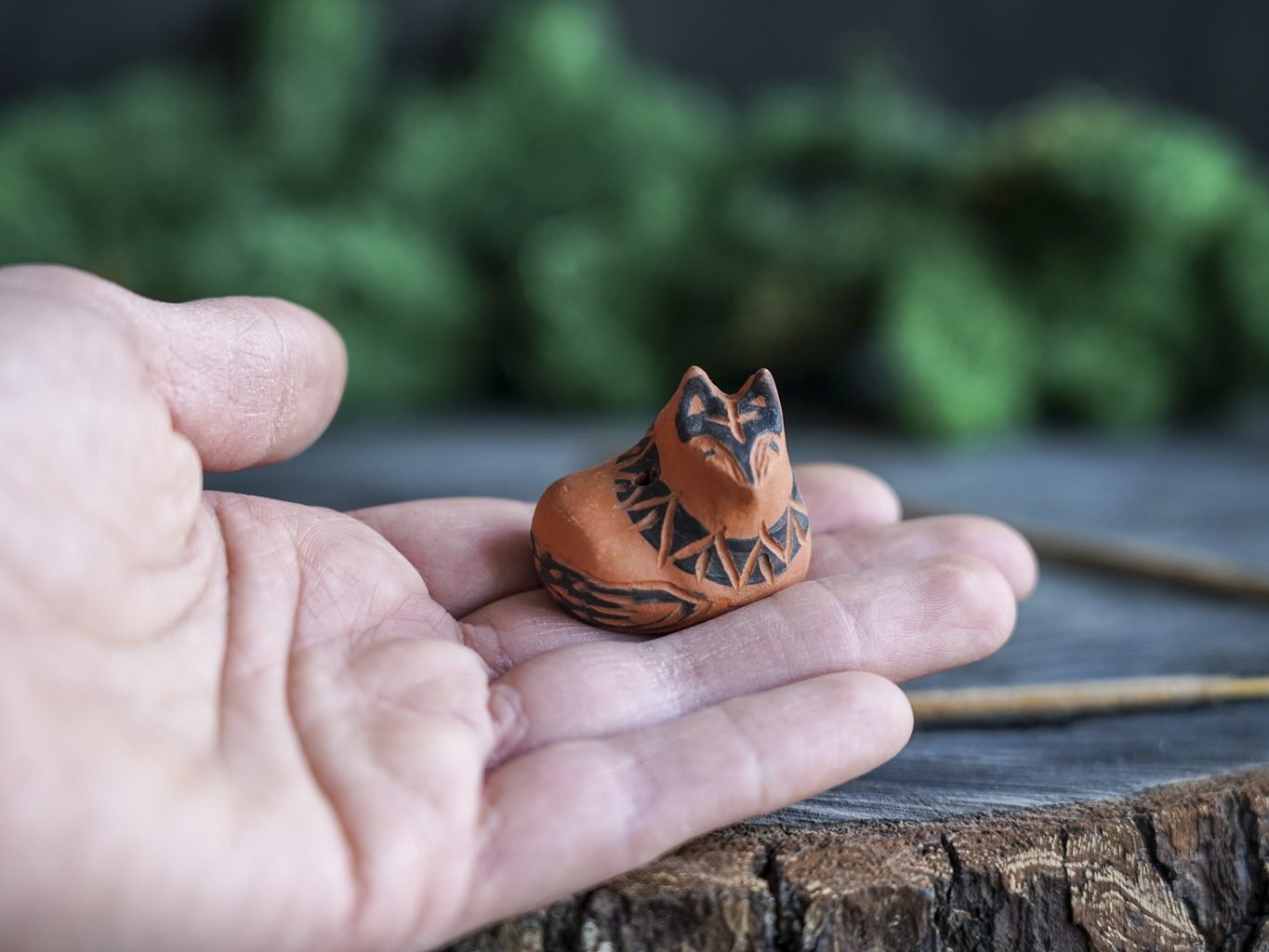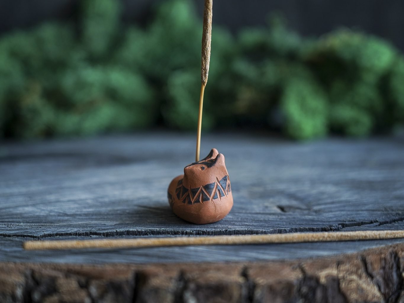 Ši smilkalinė lipdyta rankomis iš raudono molio. Tuomet išdegta pirmąjį kartą keramikos krosnyje, išpiešta poglazūriniais dažais ir antrą kartą išdegta krosnyje. Dekoravimui naudota juodafigūrės keramikos technika, žinoma nuo seno, kai natūralaus raudono molio fone juodais dažais išpiešiamos figūros ir jos padekoruojamos išraižant piešinius rėžtuku.