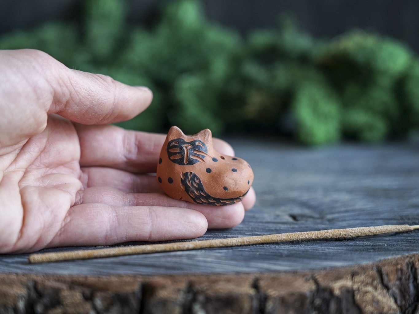 Ši smilkalinė lipdyta rankomis iš raudono molio. Tuomet išdegta pirmąjį kartą keramikos krosnyje, išpiešta poglazūriniais dažais ir antrą kartą išdegta krosnyje. Dekoravimui naudota juodafigūrės keramikos technika, žinoma nuo seno, kai natūralaus raudono molio fone juodais dažais išpiešiamos figūros ir jos padekoruojamos išraižant piešinius rėžtuku.