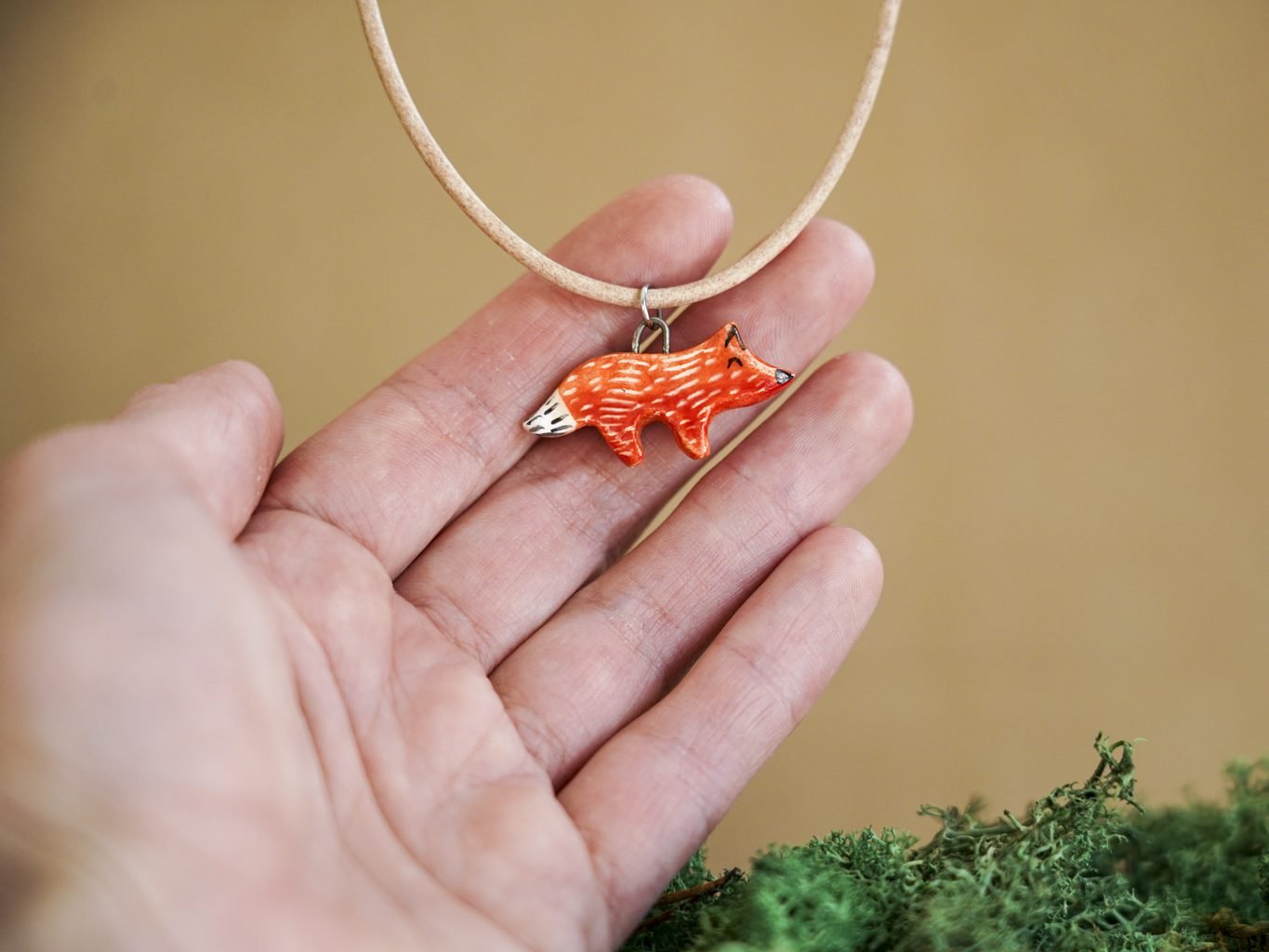Papuošalai pagaminti iš keramikos. Iš balto molio nulipdytos formos išdegamos 1000 laipsnių temperatūroje, tada išpaišomos rankomis, padengiamos bespalve glazūra ir išdegamos antrąkart.