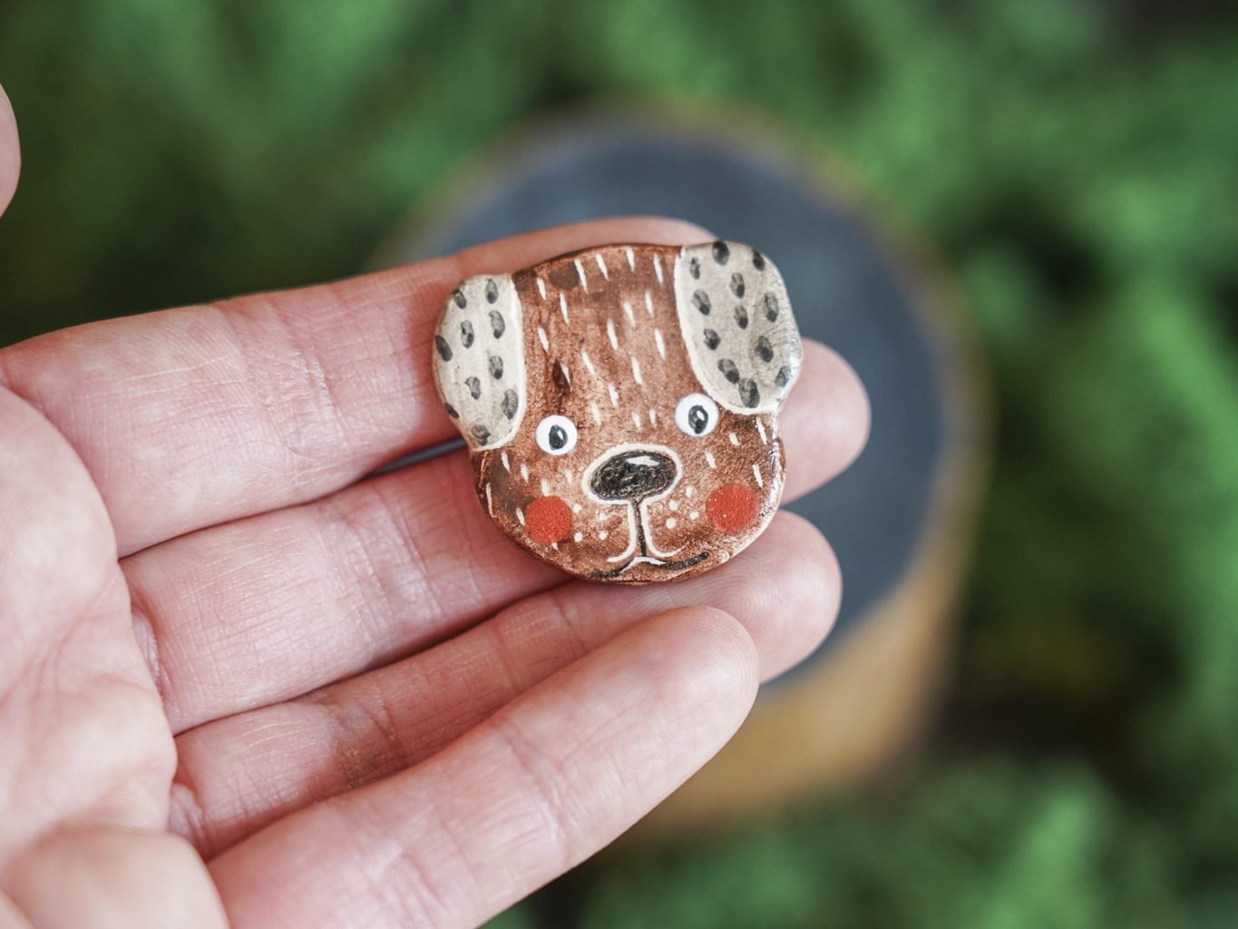 Papuošalai pagaminti iš keramikos. Iš molio nulipdytos formos išdegamos 1000 laipsnių temperatūroje, tada išpaišomos rankomis, padengiamos bespalve glazūra ir išdegamos antrąkart. Metalinė ženkliuko adatėlė pagaminta iš nerūdijančio plieno, kitoje pusėje užspaudžiama tvirta kietos gumos detale.