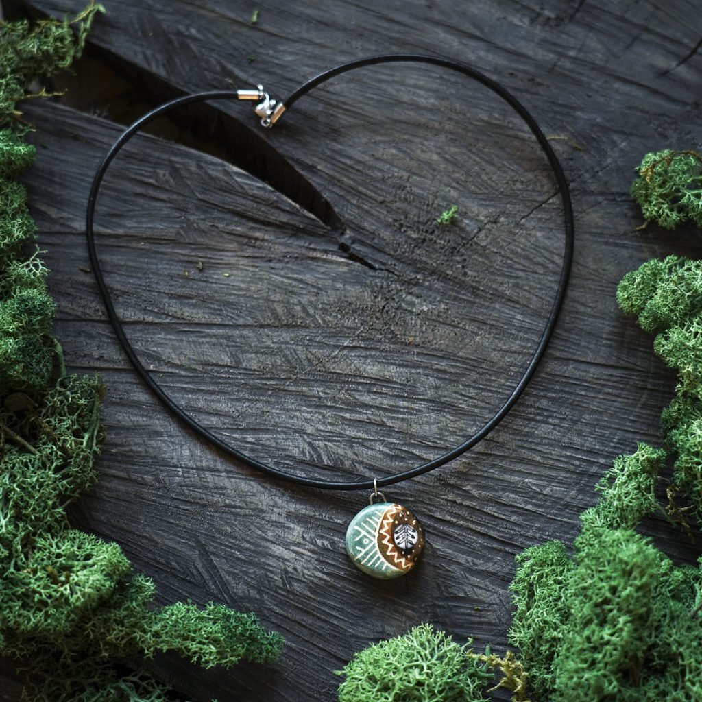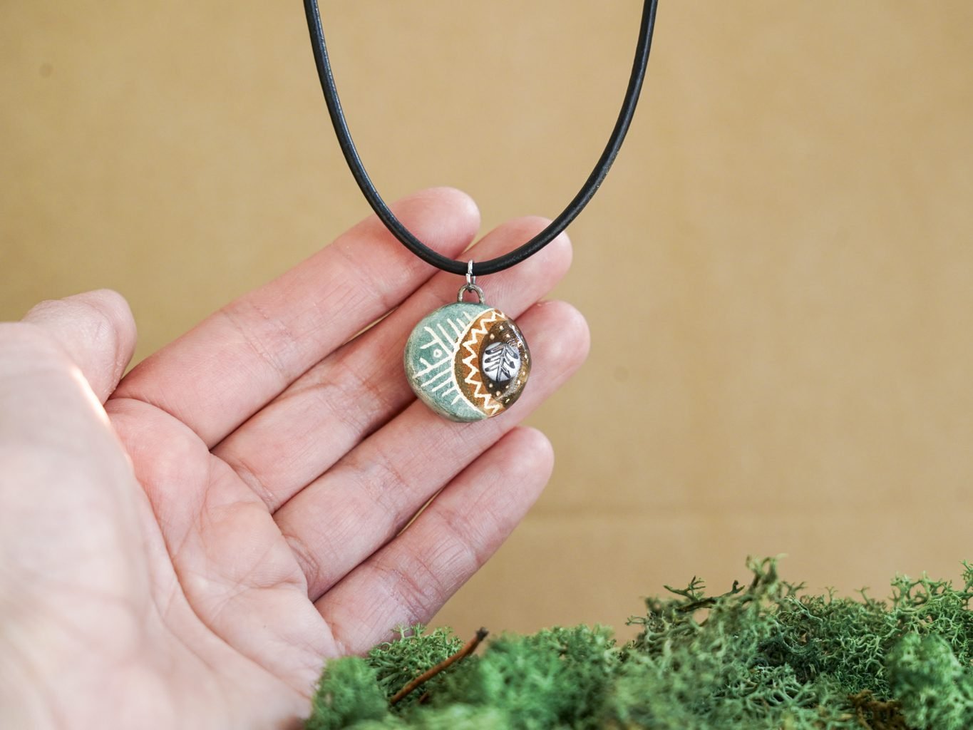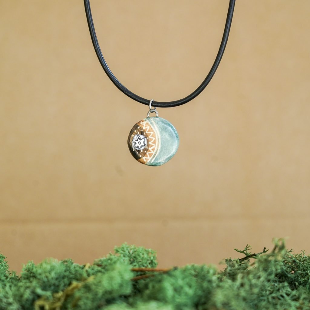 Papuošalai pagaminti iš keramikos. Iš balto molio nulipdytos formos išdegamos 1000 laipsnių temperatūroje, tada išpaišomos rankomis, padengiamos bespalve glazūra ir išdegamos antrąkart.