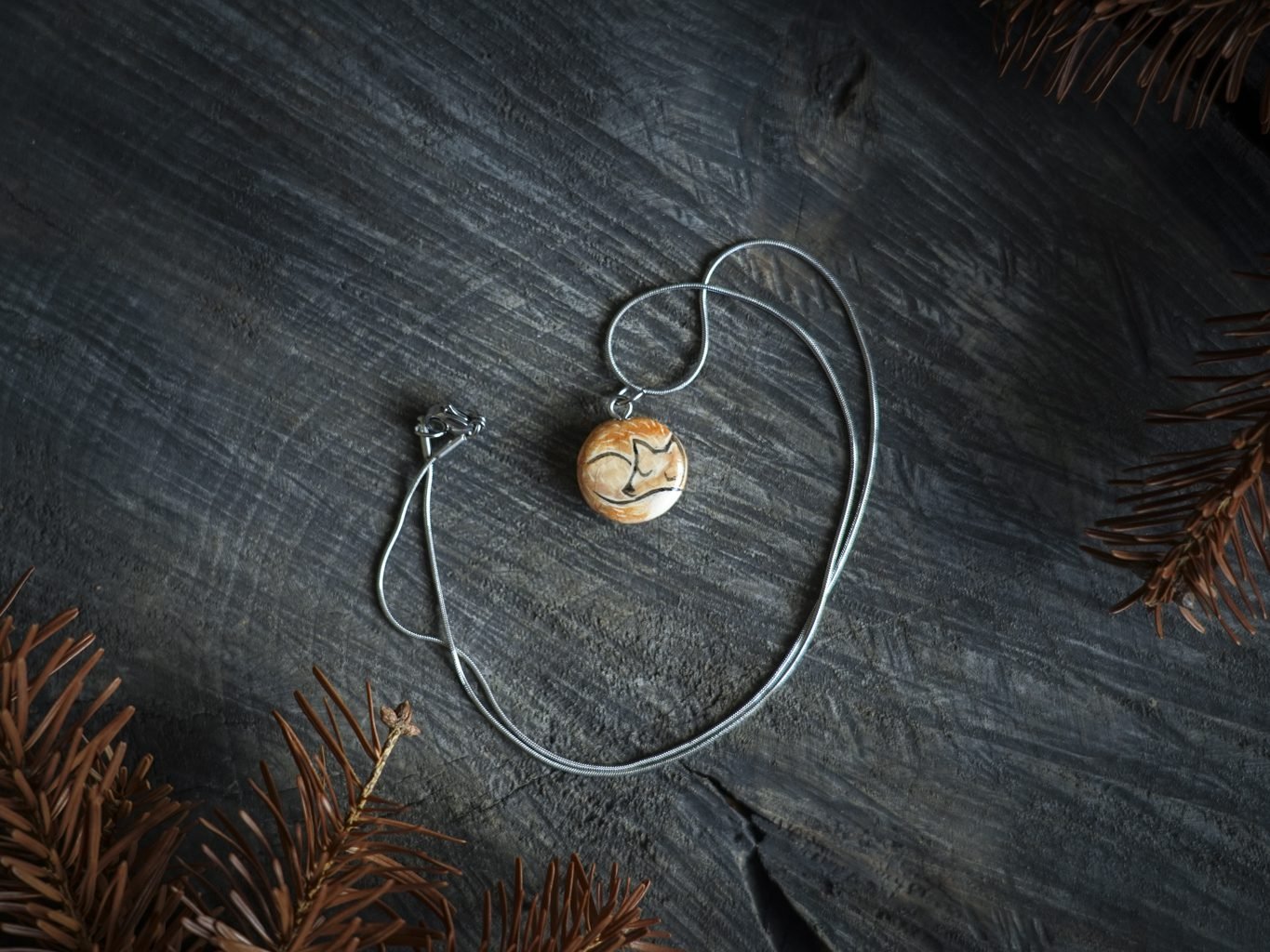 Papuošalai pagaminti iš keramikos. Iš balto molio nulipdytos formos išdegamos 1000 laipsnių temperatūroje, tada išpaišomos rankomis, padengiamos bespalve glazūra ir išdegamos antrąkart.
