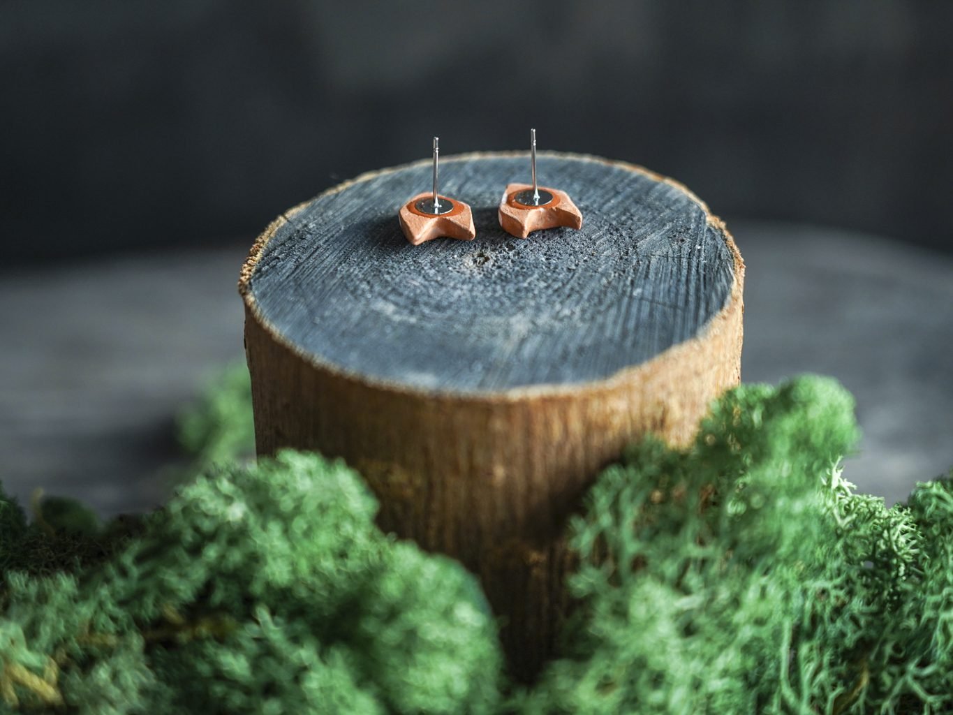 Papuošalai pagaminti iš keramikos. Iš molio nulipdytos formos išdegamos 1000 laipsnių temperatūroje, tada išpaišomos rankomis, padengiamos bespalve glazūra ir išdegamos antrąkart. Auskarų adatėlės pagamintos iš nerūdijančio plieno.