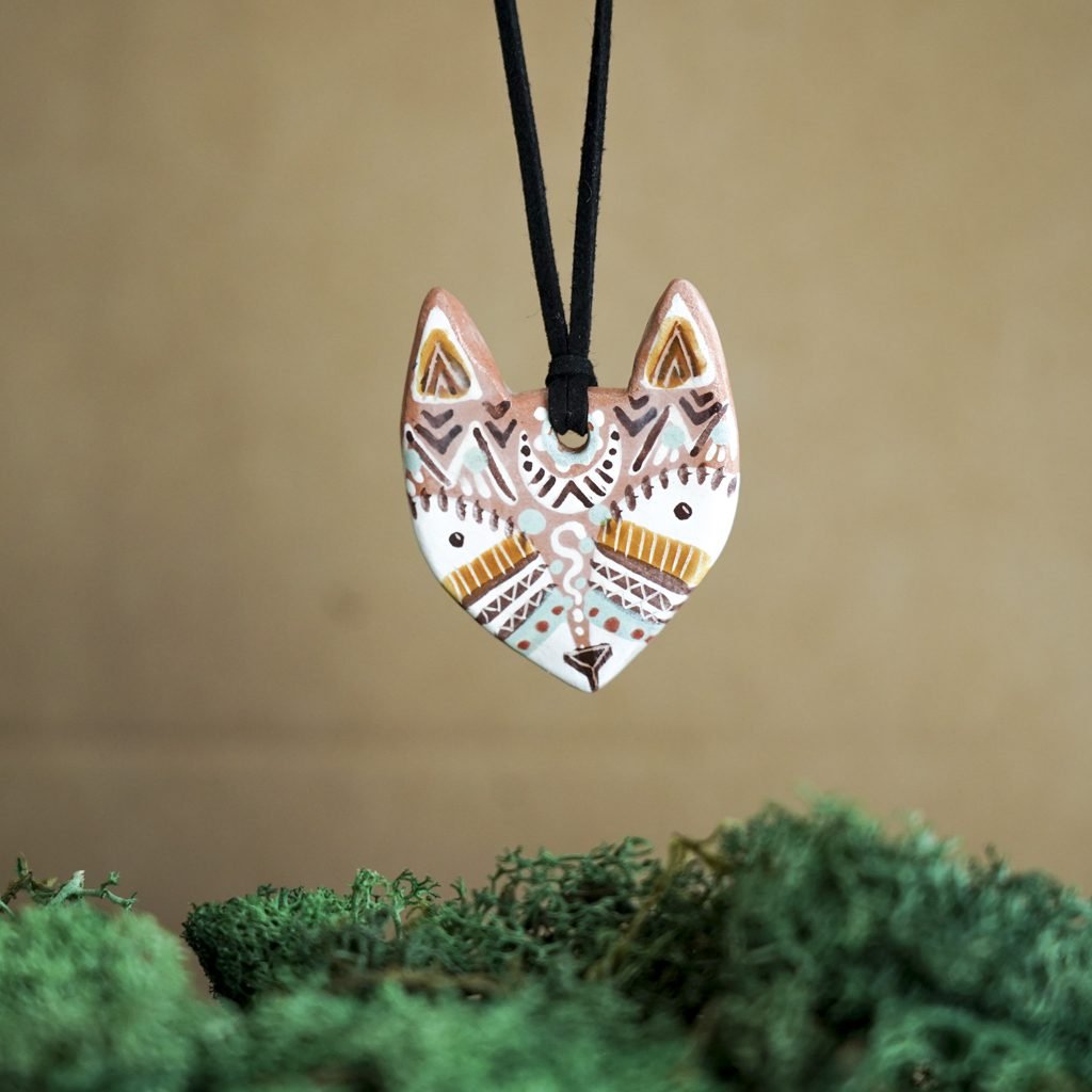 Papuošalai pagaminti iš keramikos. Iš balto molio nulipdytos formos išdegamos 1000 laipsnių temperatūroje, tada išpaišomos rankomis, padengiamos bespalve glazūra ir išdegamos antrąkart.