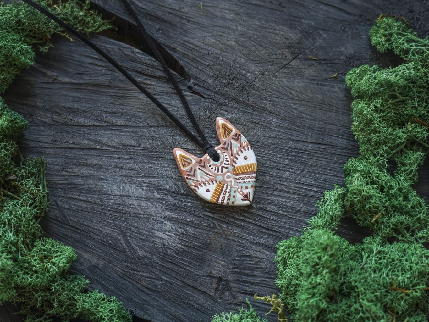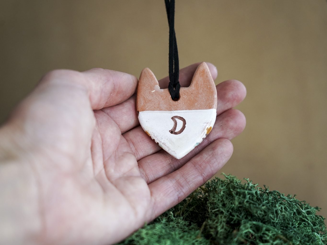Pakabukas pakabintas ant odinės virvelės