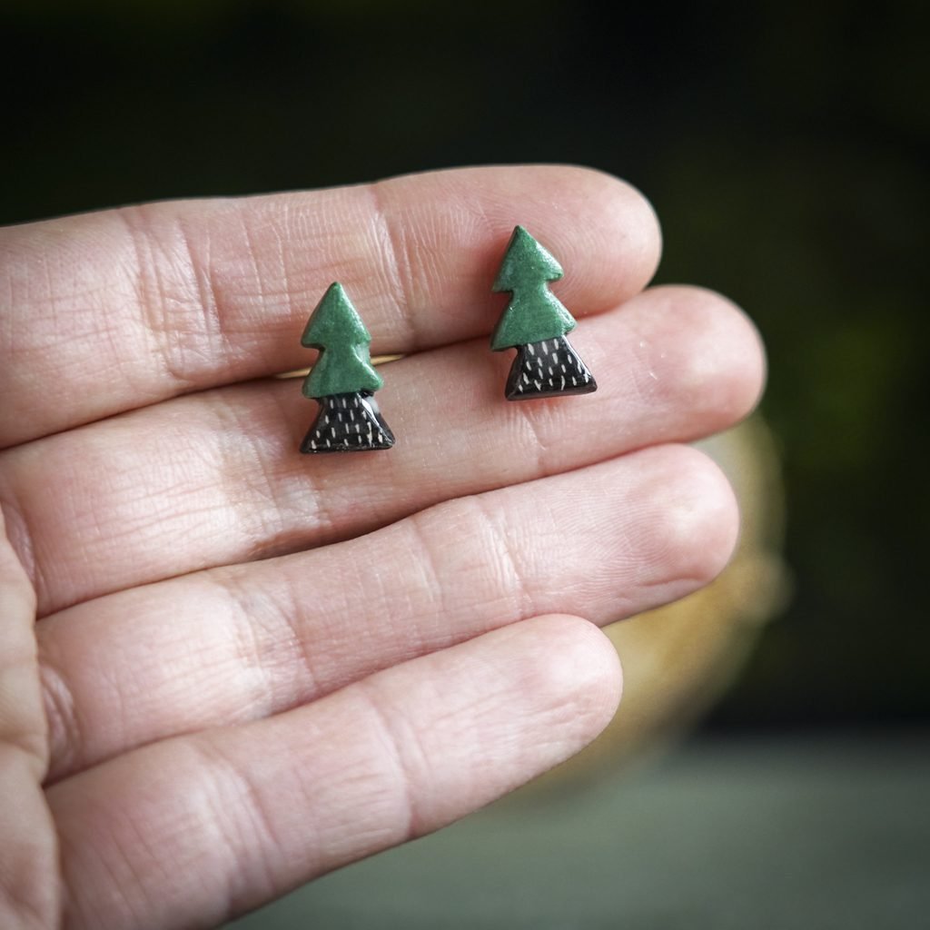 Papuošalai pagaminti iš keramikos. Iš balto molio nulipdytos formos išdegamos 1000 laipsnių temperatūroje, tada išpaišomos rankomis, padengiamos bespalve glazūra ir išdegamos antrąkart. Auskarų adatėlės pagamintos iš nerūdijančio plieno.