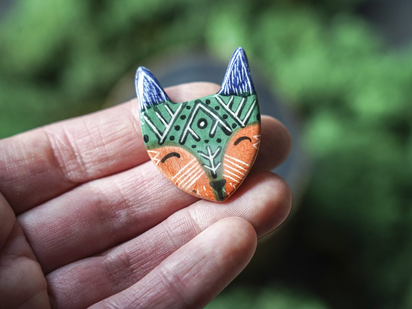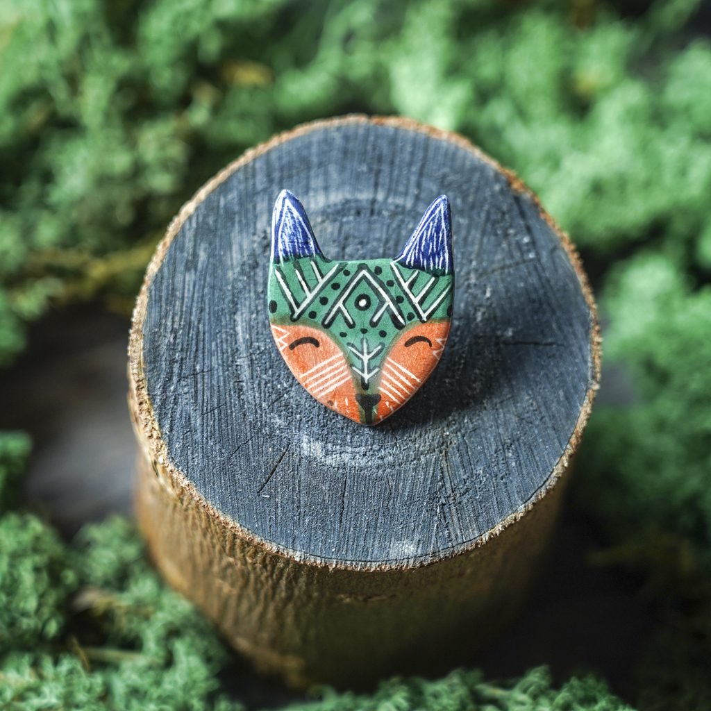 Papuošalai pagaminti iš keramikos. Iš molio nulipdytos formos išdegamos 1000 laipsnių temperatūroje, tada išpaišomos rankomis, padengiamos bespalve glazūra ir išdegamos antrąkart. Metalinė ženkliuko adatėlė pagaminta iš nerūdijančio plieno, kitoje pusėje užspaudžiama tvirta kietos gumos detale.