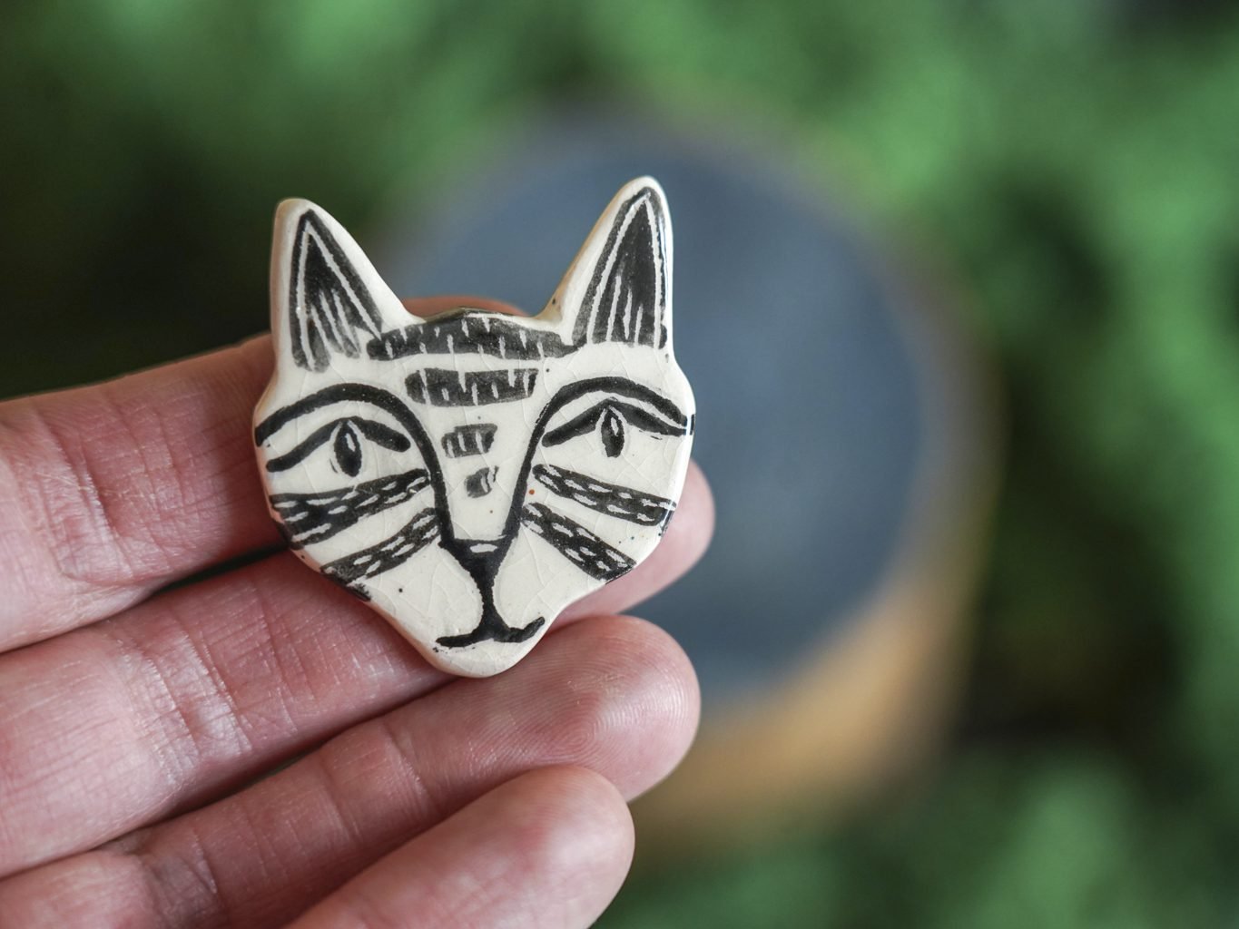 Papuošalai pagaminti iš keramikos. Iš molio nulipdytos formos išdegamos 1000 laipsnių temperatūroje, tada išpaišomos rankomis, padengiamos bespalve glazūra ir išdegamos antrąkart. Metalinė ženkliuko adatėlė pagaminta iš nerūdijančio plieno, kitoje pusėje užspaudžiama tvirta kietos gumos detale.